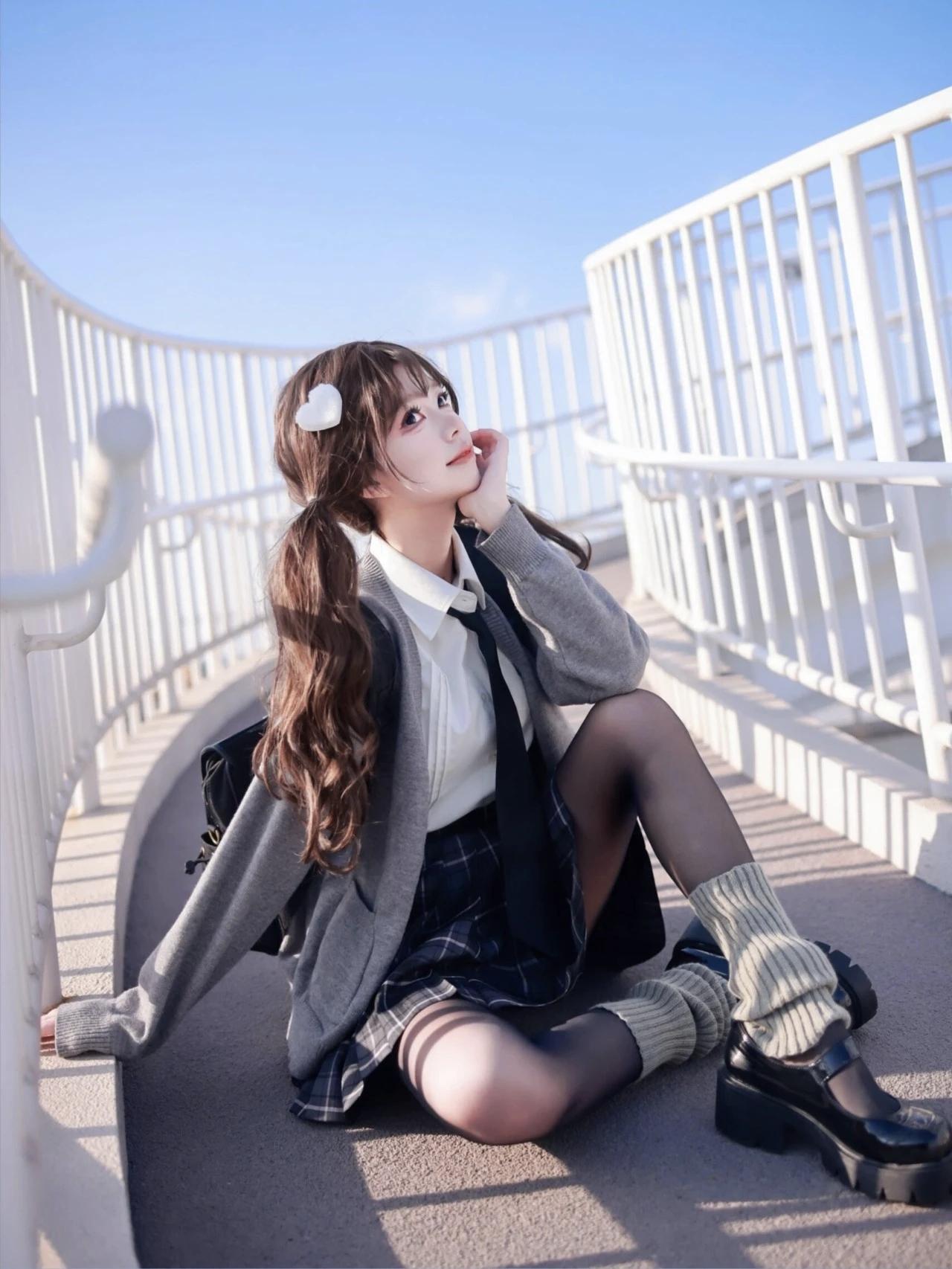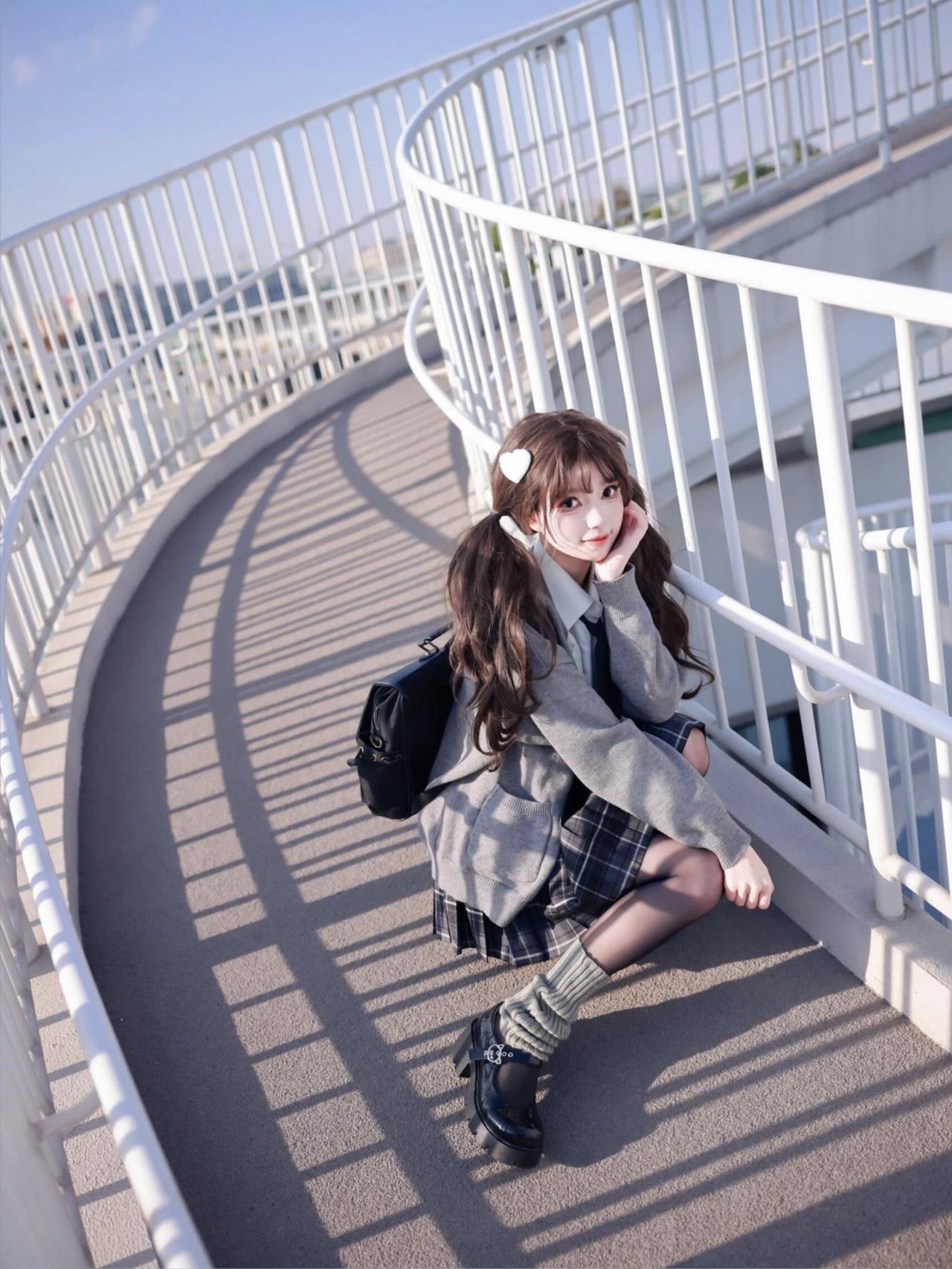 少女在桥上摆POSE,青春洋溢!🌞👗👠