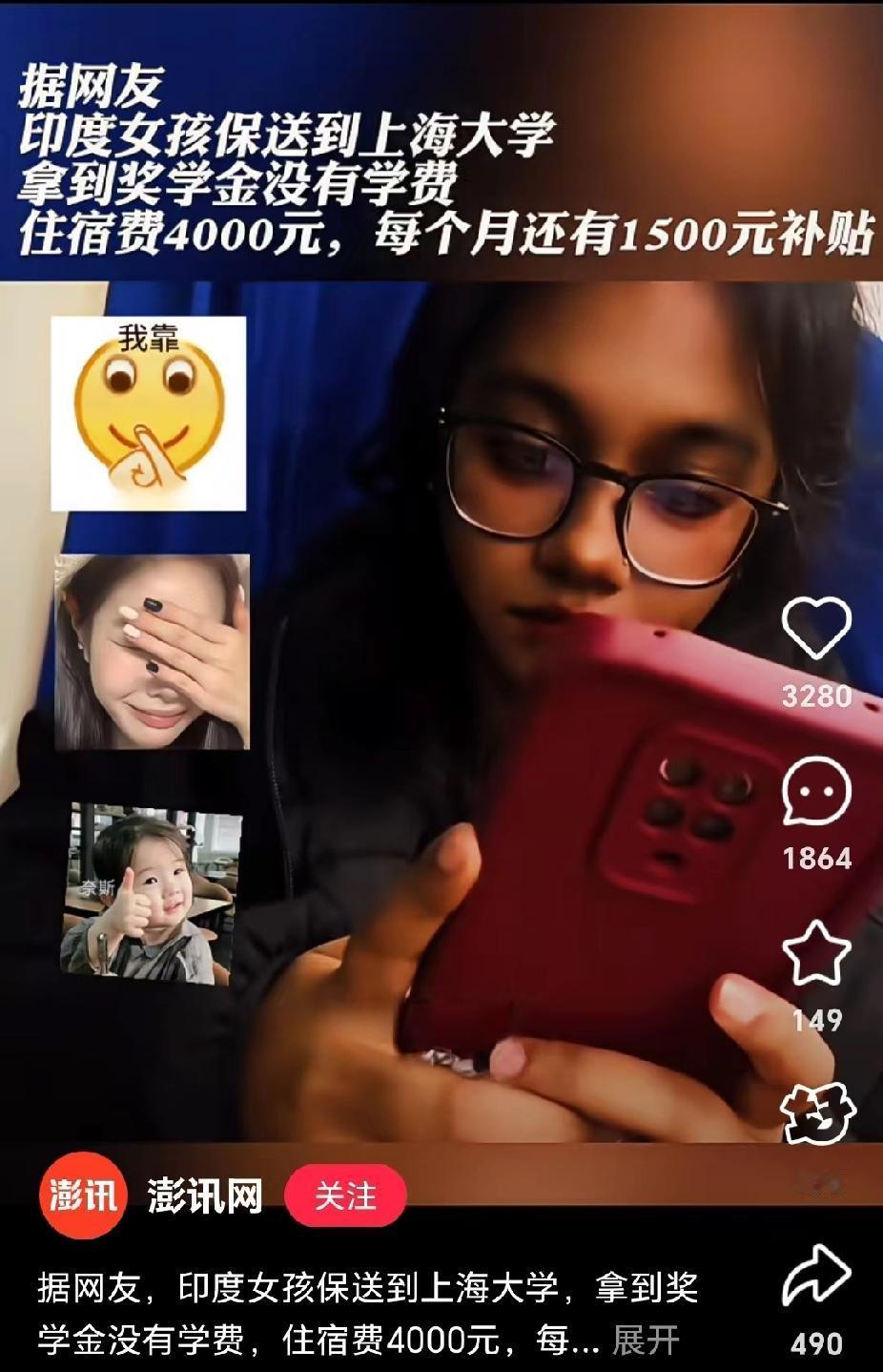 估计今晚咱大学生要睡不着了, 上海大学也肯定没有想到, 网友拍到的印度女孩保送上