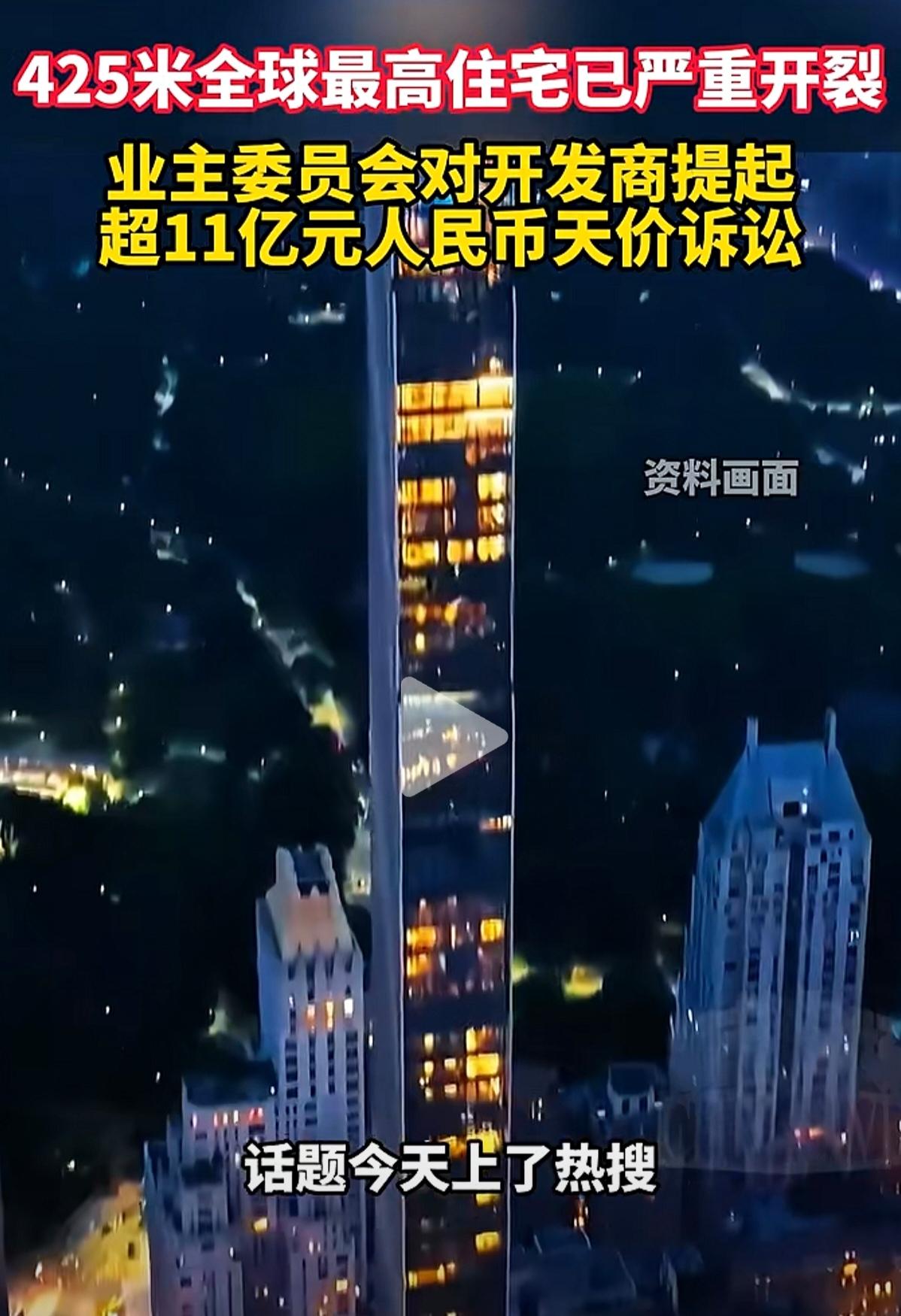 纽约425米高的住宅,墙体出现了严重的开裂现象,上千条裂缝布满了该大楼的外墙面。看到这条新闻,还是挺惊讶的,居然有住宅楼高达425米。这也太疯狂了,一个住宅楼,有必要修建的这么高吗?居住在三四百米高的楼房里,刮大风的时候,会不会摇晃的厉害?商务楼修建这么高,还是有它的用途的,这个可以理解。但是住宅楼,修建的这么高,感觉没这个必要。这种墙体开裂,维修起来,应该很麻烦,就算提起高额的赔偿诉讼,恐怕也很难解决开裂问题。