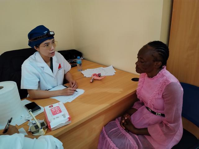 11月25日,在赤道几内亚首都马拉博一所学校,中国医疗队妇产科医生为患者诊疗。新华社发(第34批援赤道几内亚中国医疗队供图)