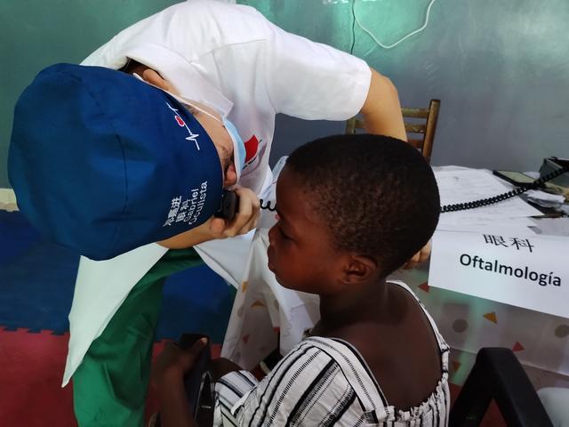 第34批援赤道几内亚中国医疗队25日在赤几首都马拉博一所学校开展义诊活动,为200多名师生进行诊疗并发放药品。