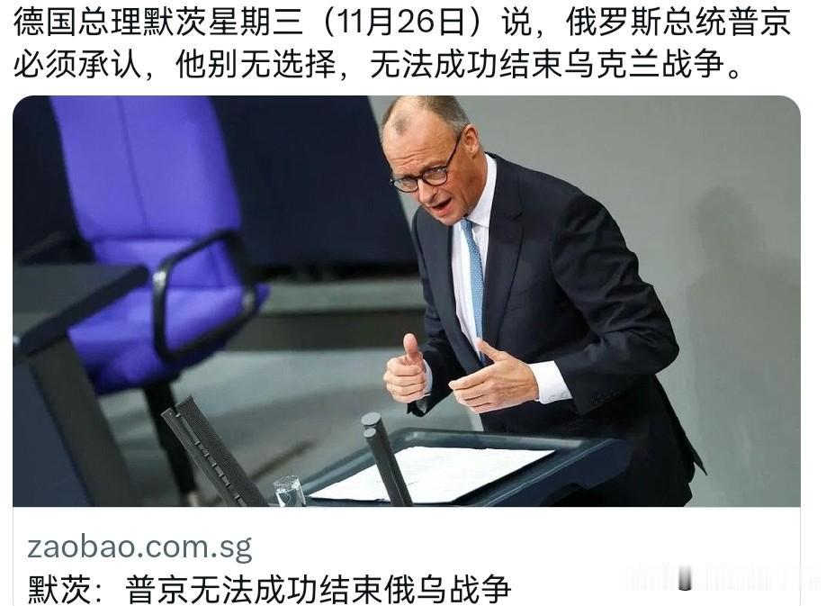 德国总理默茨把话说的很硬!11月26日,德国总理默茨表示,俄罗斯总统普京必须承认