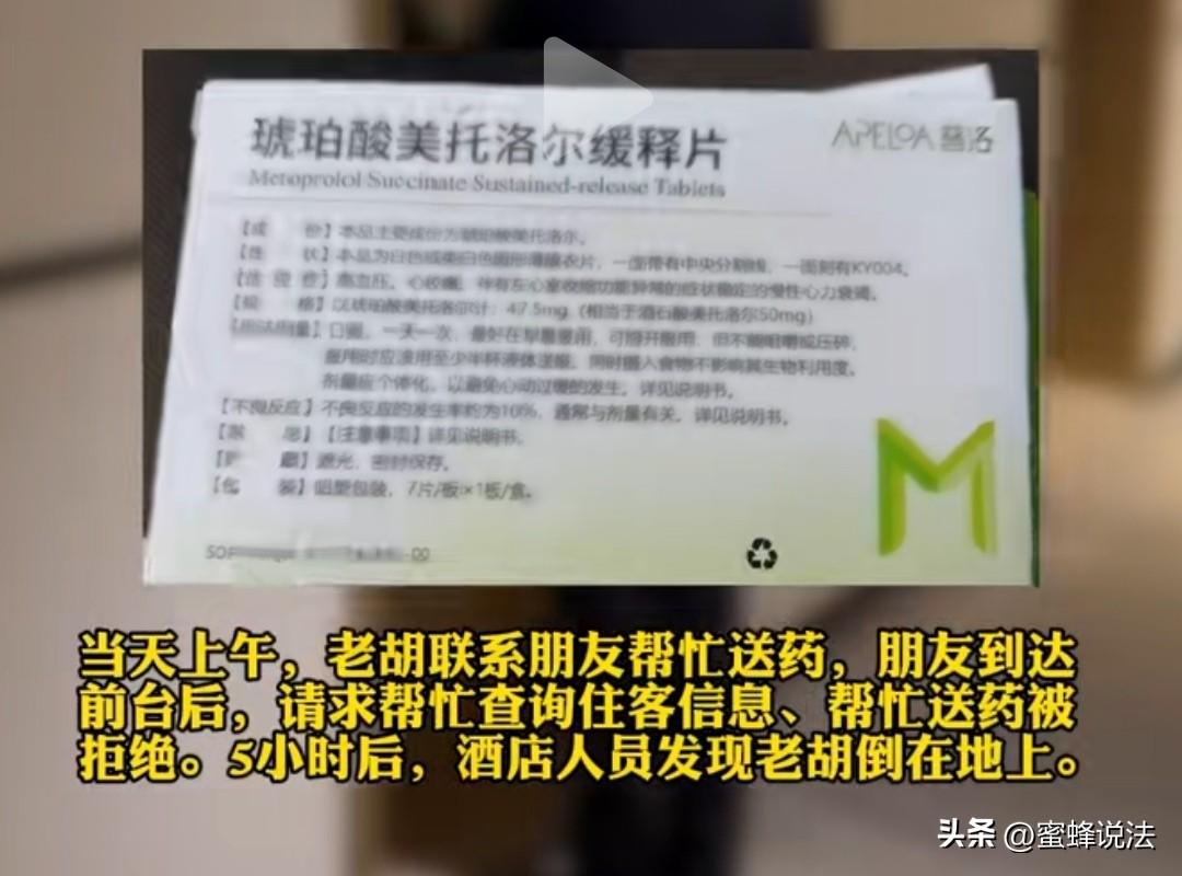 湖北武汉,男子应朋友的要求送药到酒店,因不知道朋友的全名和房号,他向工作人员求助查询住客信息并送药上楼,却被以"无义务帮忙"为由拒绝,5个小时后保洁员发现男子朋友倒地身亡。家属表示,酒店没有及时排查房客,错过最佳抢救时间,要求酒店赔偿,但酒店只愿人道主义补偿2万。 韩顺(化名)收到老胡离世的消息,他非常震惊,得知酒店迟迟没有把药送给老胡,他很愤怒。 他后悔没有跟随老胡办理入住手续,也没有提前问他房间号,要是知道房间号,及时把药送给,也许一切就不会发生。 11月19日晚上,韩顺因为有其他事,把老胡送到酒店就离开了,老胡自己办理的入住手续。 20日上午9点19分,韩顺接到了老胡的店员,对方说他不舒服,委托韩顺到一个朋友那里帮忙拿药。 老胡告诉他,他的药放在了他朋友的冰箱里,他已经和他朋友说了让韩顺去拿药。 老胡交代清楚后,韩顺不敢耽搁,按照老胡给的地址,来到了他的朋友那里拿药。 韩顺不是喜欢问东问西的人,老胡叫他拿药时他没有问是什么药,拿到药后也没有去看是什么药,第一时间就赶往酒店。 可来到酒店他犯难了,因为他和老胡是青年的时候认识的,俩人多年未见,只知道老胡被圈内人叫作“瓜老板”,并不清楚其真名。 他打电话给老胡,可对方始终没有接电话,于是就想着让前台帮忙送一下。 韩顺告诉了前台自己所知道的关于老胡的信息,说他是前一晚入住的,姓胡,名字是三个字。 可前台把药接过来后,说他们没有义务送药给老胡,要求韩顺打电话让老胡自己下来取。 没有办法,韩顺只能继续拨打老胡的电话,可打了好几个电话他都没去接,正好韩顺有事,于是就给老胡留言,把药放在柜台就走了。 韩顺没有想到,老胡没有下来拿药,而前台也没有把药送给老胡。 就这样好几个小时过去了,下午3点的时候,保洁员想要打扫卫生,才发现老胡倒在地上。 对于老胡的死亡,老胡的家属认为,酒店没有及时排查房客,错过了最佳施救时间,酒店应该承担责任。 但酒店辩解,韩顺说不出老胡的姓名,也没也没告知客人是什么病情。前台人员出于隐私考虑,没有打开塑料袋看是什么药品,更没有说过无帮忙送药的义务。 工作人员还表示,前台确实可以查询到老胡的信息,但他是酒店的金牌会员,可以延迟到下午3点退房,因此他们中午不会去打扰客人。 酒店的意思就是老胡的死和他们没有关系,但他们出于人道主义给予家属2万元赔偿。 其实酒店的做法欠妥,韩顺送药给老胡,给他电话不接,韩顺就委托前台把药给老胡,前台应当预知老胡可能发生危险,及时查出其房间号,把药给老胡,也许一切悲剧就可以避免。 可就因为酒店没有及时把药给老胡,导致其病情发作,酒店和老胡的死亡是存在因果关系的。 《民法典》第一千一百六十五条:行为人因过错侵害他人民事权益造成损害的,应当承担侵权责任。 依照法律规定推定行为人有过错,其不能证明自己没有过错的,应当承担侵权责任。 酒店想要推卸责任,不想承担一点责任那不大可能。 有人提出疑问,韩顺送药没有亲自送到老胡手中,他会不会被追责? 韩顺的行为属于无偿帮工,他当时并不知道老胡的病情,而且当时求助过前台,总体来说他并不存在过错,因此不需要承担责任。 对于此事,您怎么看?