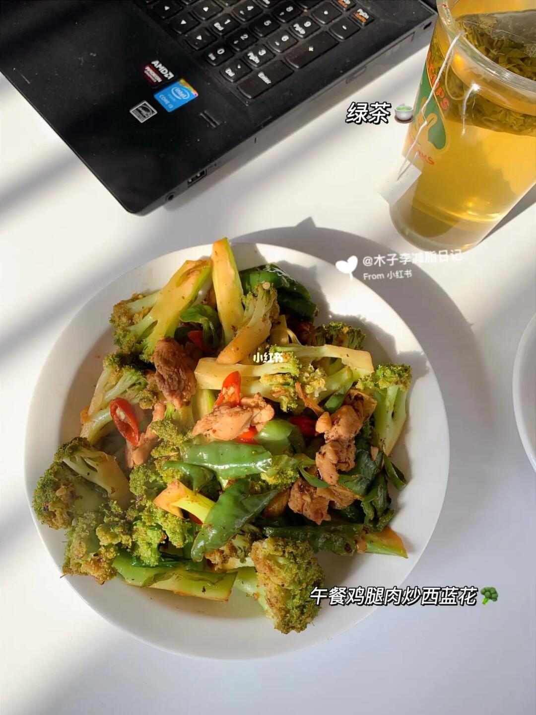 🥣午餐:鸡腿肉炒西蓝花🥦|绿茶🍵