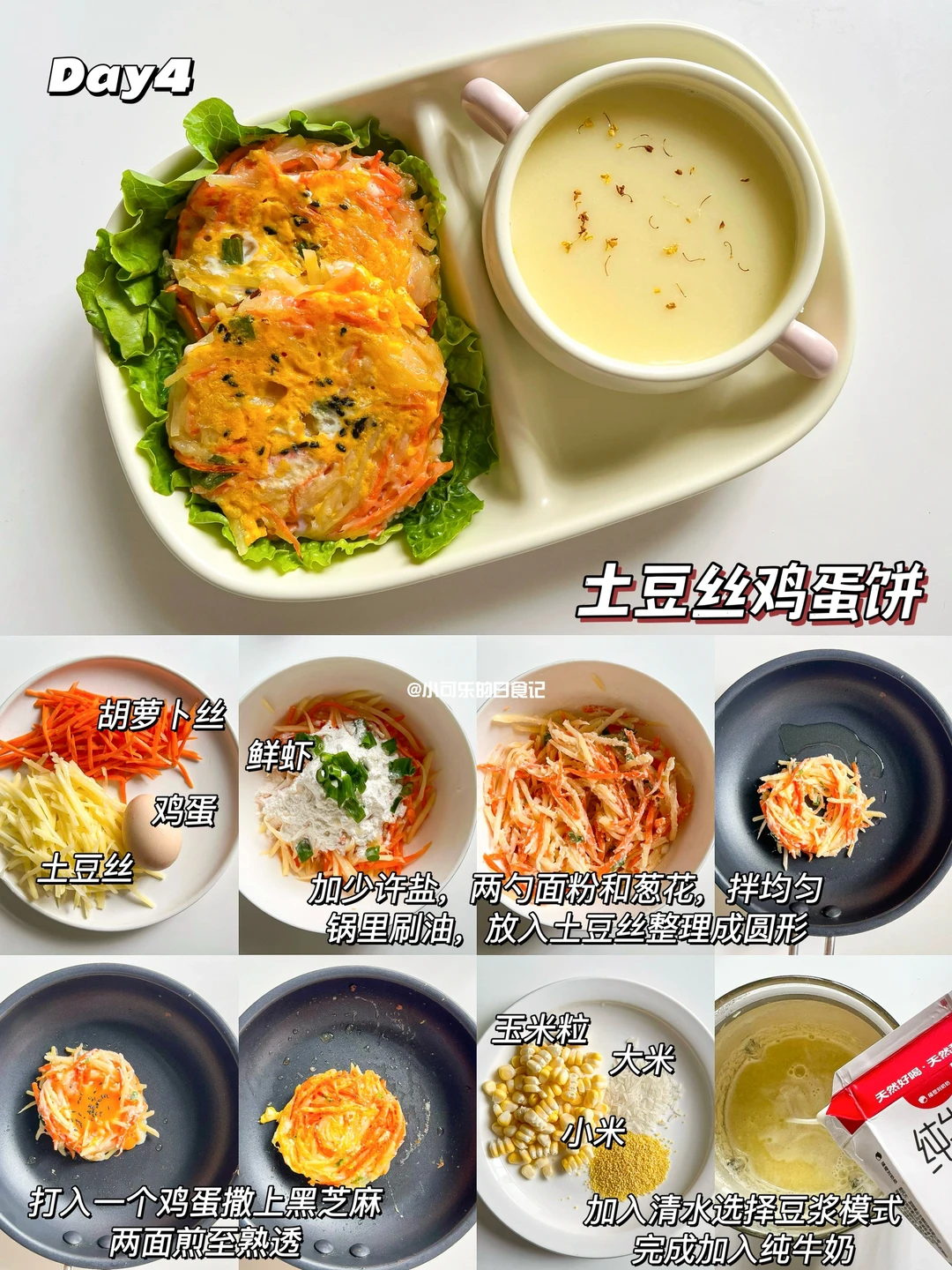 ✅Day4: 土豆丝鸡蛋饼+奶香玉米汁