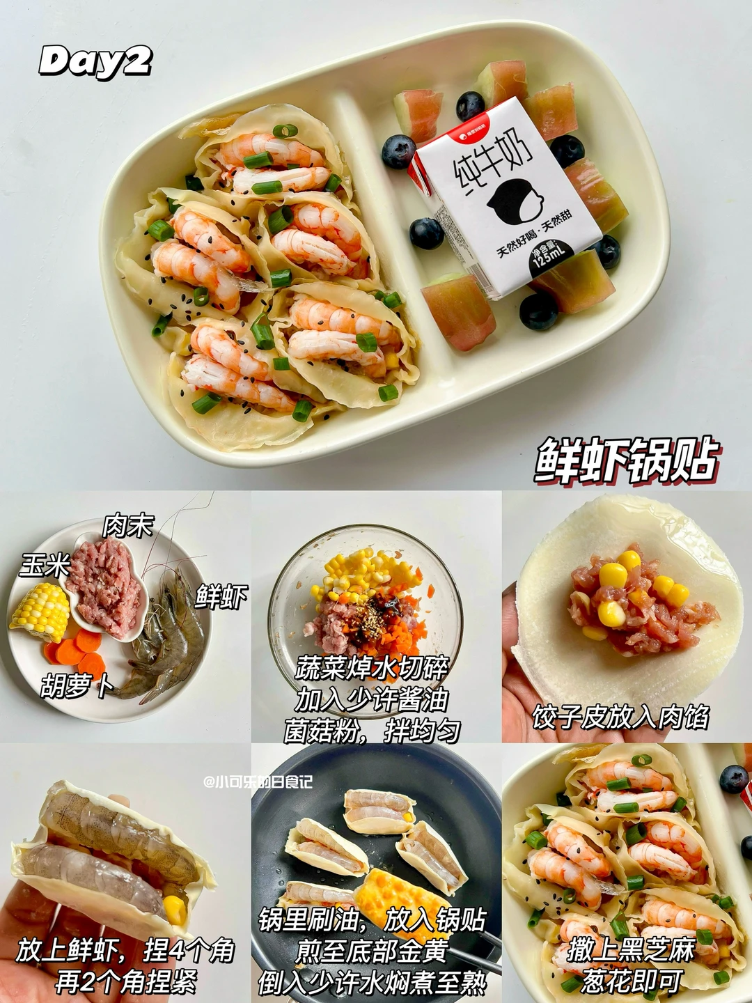 ✅Day2: 鲜虾锅贴+纯牛奶+莲雾、蓝莓