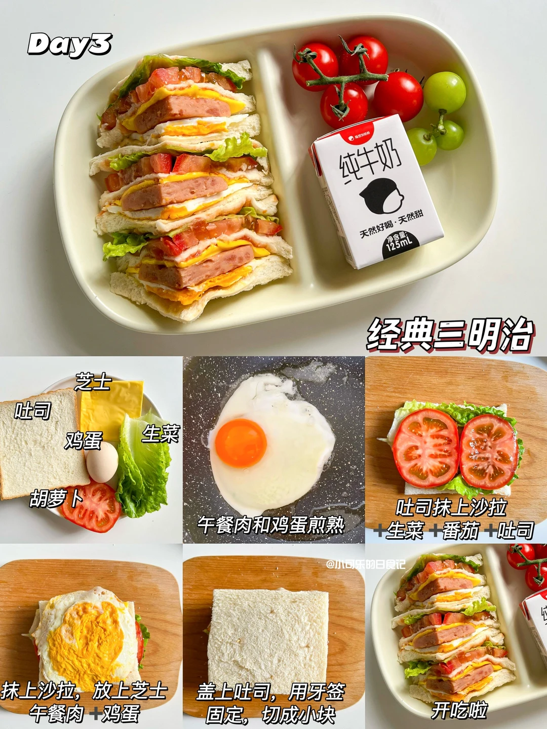 ✅Day3: 经典三明治+纯牛奶+小番茄、葡萄