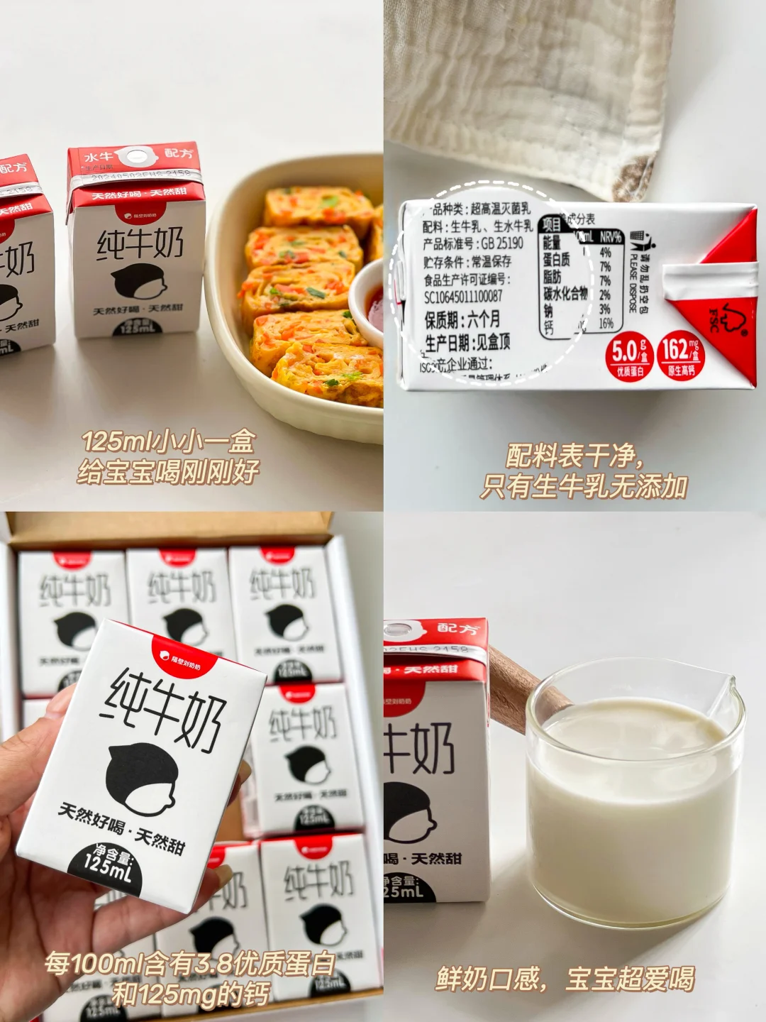 家里有挑食宝宝的都快来试试,轻松拯救饭渣宝宝。孩子的早餐我喜欢搭配一盒隔壁刘奶奶的纯牛奶,125mL小小一盒,搭配早餐一起刚刚好,完全不用担心影响孩子吃主食。配料表干净,奶香味浓郁,口感丝滑又香甜。平时出门我都会放两盒在包里,小小的不占位置,应该没有哪个小朋友会拒绝这个mini奶,一有活动我都是会囤货~