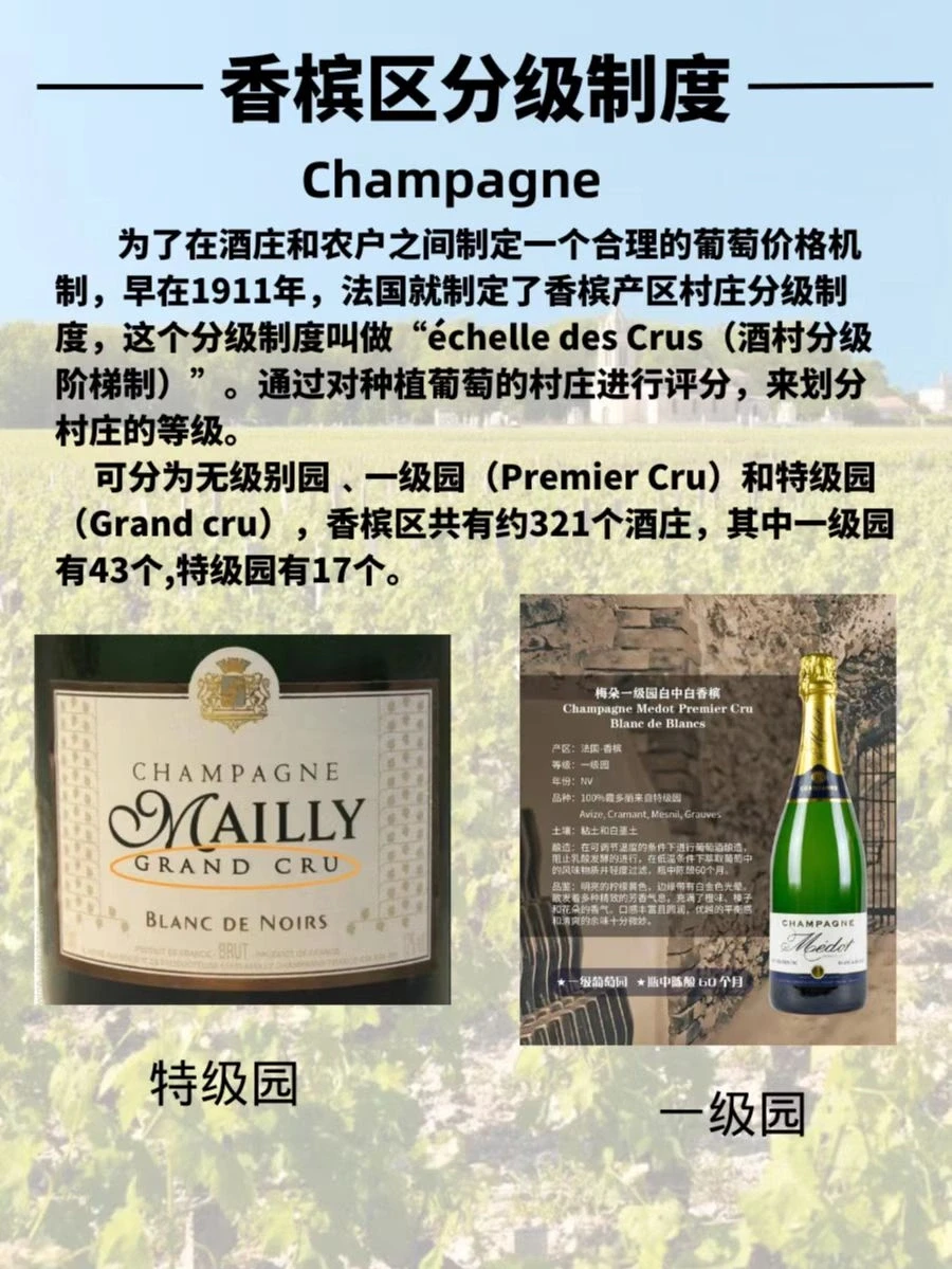 分为无级别园,一级园(Premier Cru)和特级园(Grand Cru)。