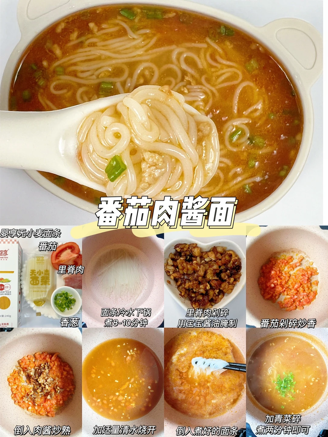 无小麦面条冷水下锅,中小火煮10分钟左右捞出备用,里脊肉切成小肉块宝宝酱油腌制15分左右,西红柿热水烫下去皮,切成小块,锅中油热先翻炒西红柿,炒出汁加入肉沫继续翻炒熟,加入适量水,水开下入煮好的面条,继续煮2分钟左右,加入香葱,搅拌均匀即可,1岁以上加调味品!