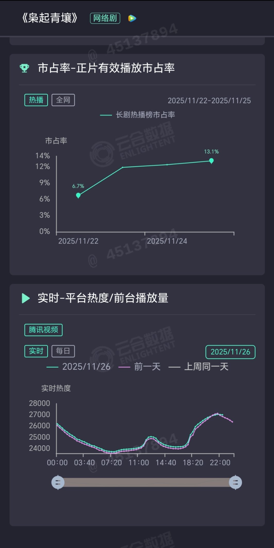枭起青壤一直横盘,今天热度峰值不如昨天,1500都要咬咬牙,播前真没想到大生意人扑开,次日热度也只有7600+,看过的说说有起来的可能性么,还是只能吹小众品质剧