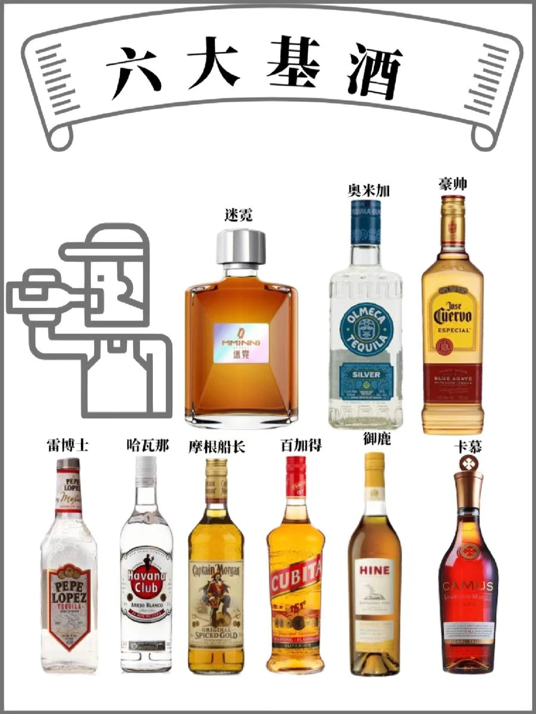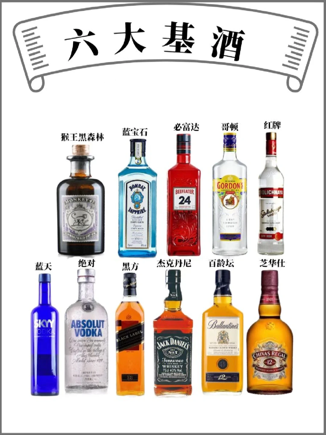 🎈第一步,准备六大基酒: