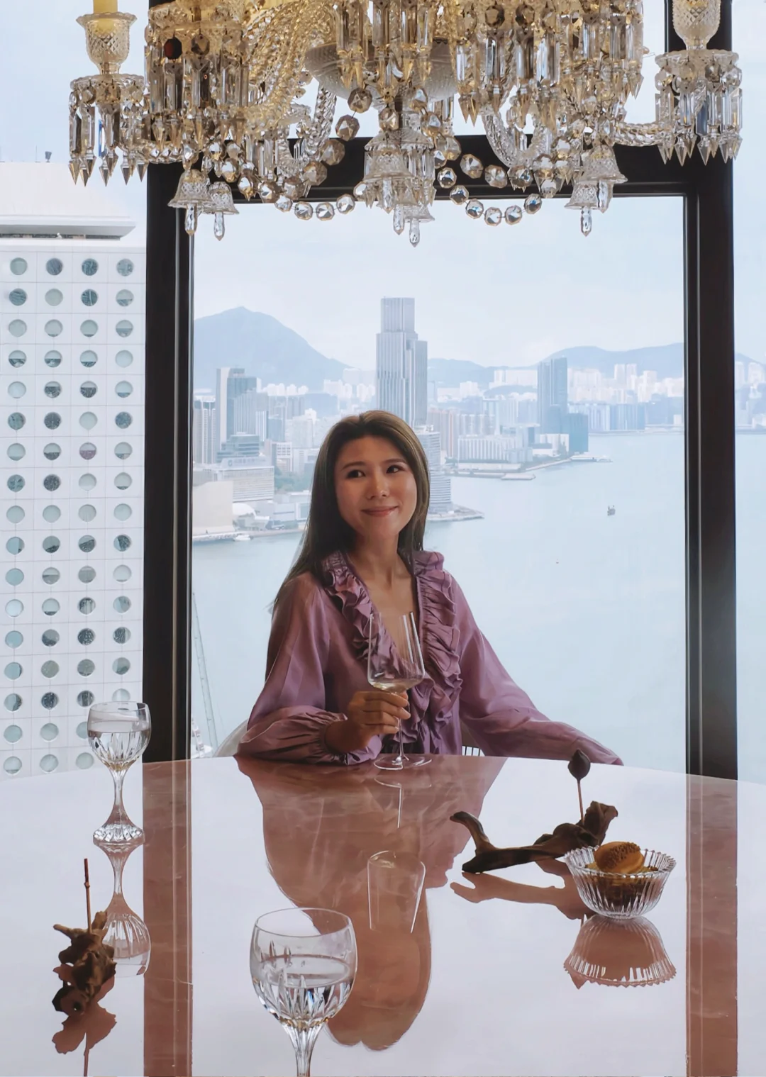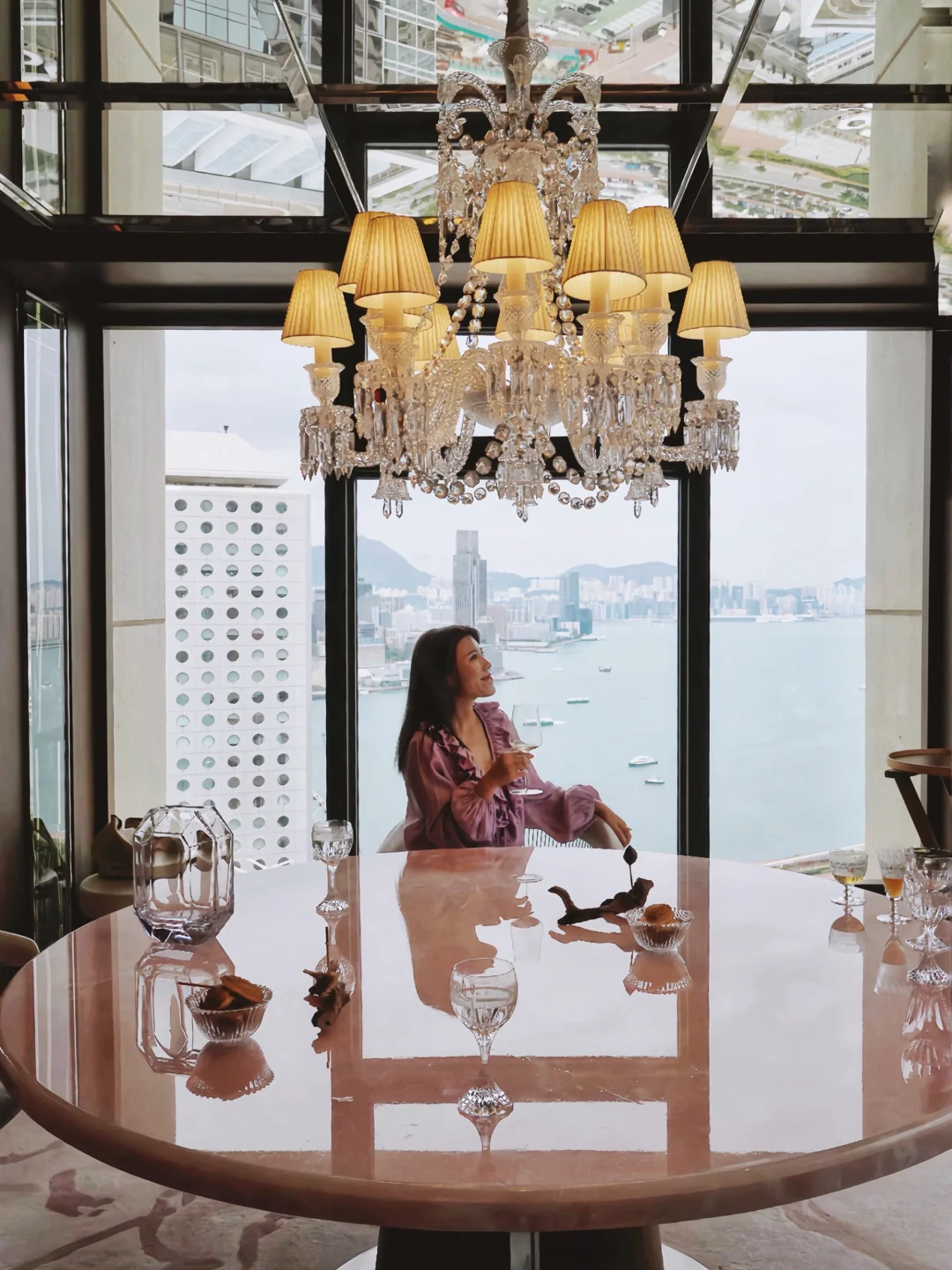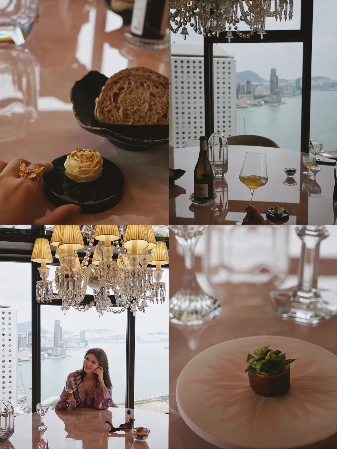 法国三星女主厨与百年水晶品牌联名!44楼俯瞰维港夜景,全店Baccarat水晶灯+镜面墙,餐具都是古董水晶杯,连食物都像艺术品。开放式厨房宛如剧场,主厨就是舞台中心!