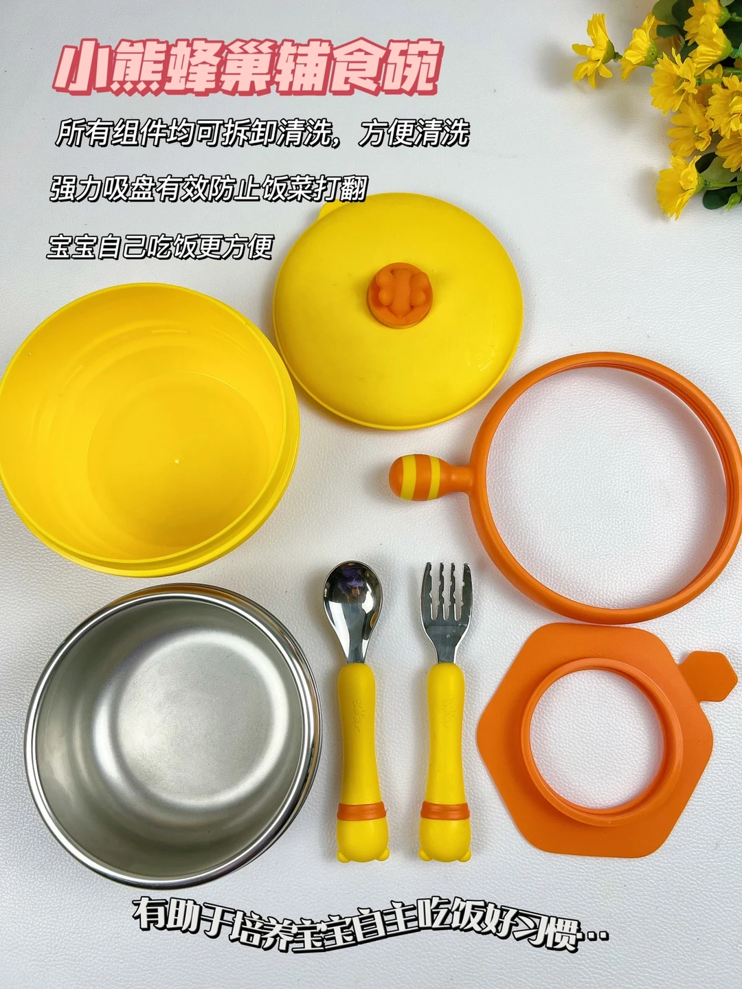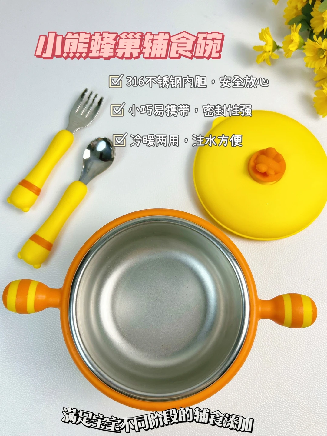 🔸宝宝干饭可以备一个注水保温碗,像吃面条、辅食粥、营养汤类十分有用。夏天粥太烫可以注入冷水降温,冬天可以注入温水保温,很适合饭渣、吃饭时间长的宝宝呢,而且底部有吸盘不会担心宝宝一扒拉就倒😊
