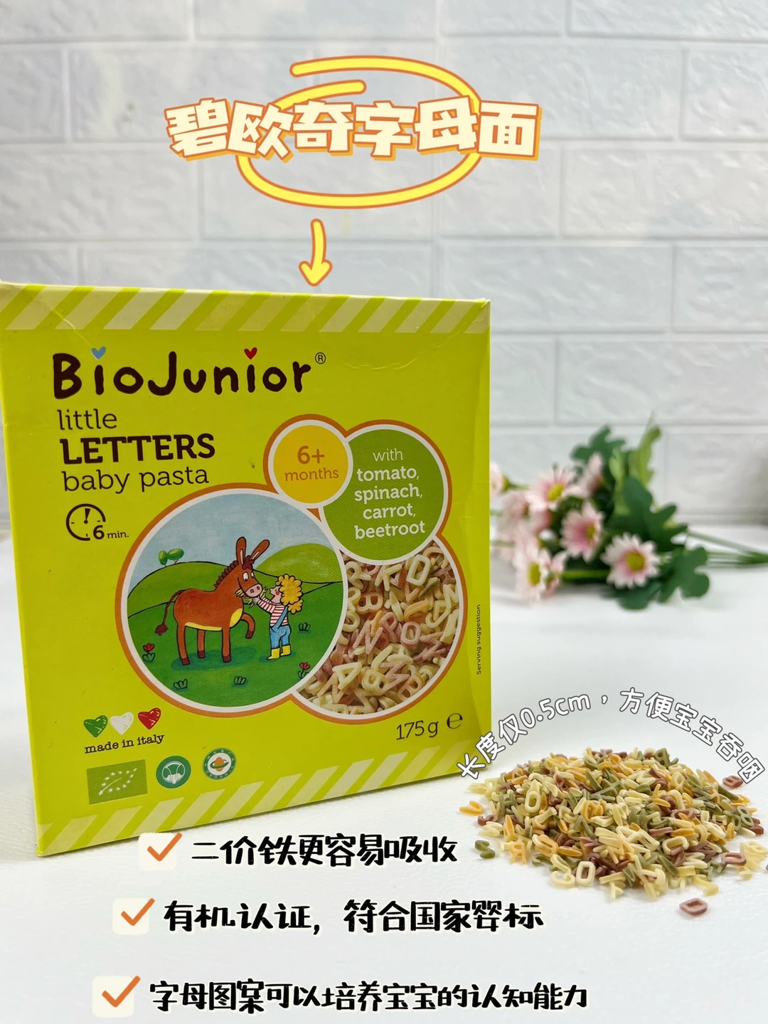 今天我做拌面选择的是碧欧奇的字母面,它长度只有0.5cm,特别方便宝宝吞咽,可爱的字母,鲜艳的果蔬颜色,可以很好的培养宝宝的认知能力,吃的同时还能小小的学习下英文字母,真的太有趣了[愉快],而且它里边含有二级铁,更有助于宝宝吸收,我家月宝是很喜欢的!