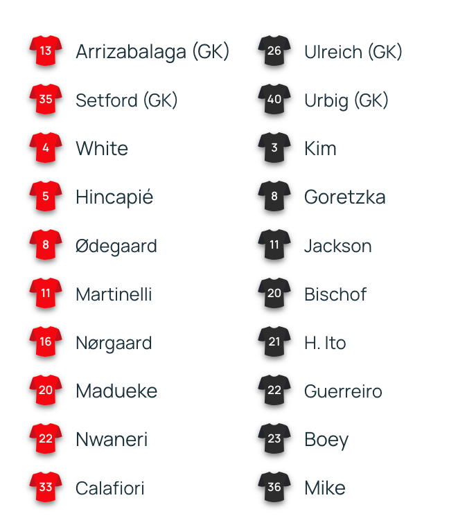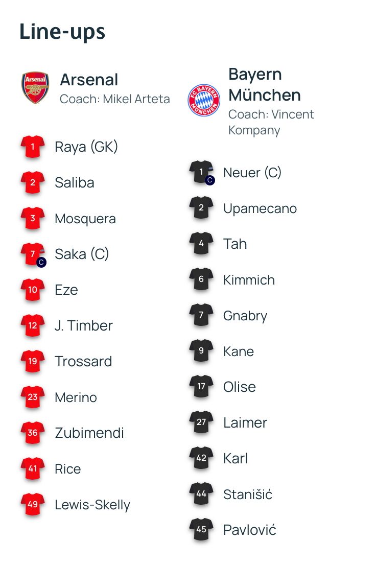 虎扑11月27日讯欧冠联赛阶段第五轮焦点战,阿森纳主场迎战拜仁,赛前,双方公布了本场比赛首发名单。