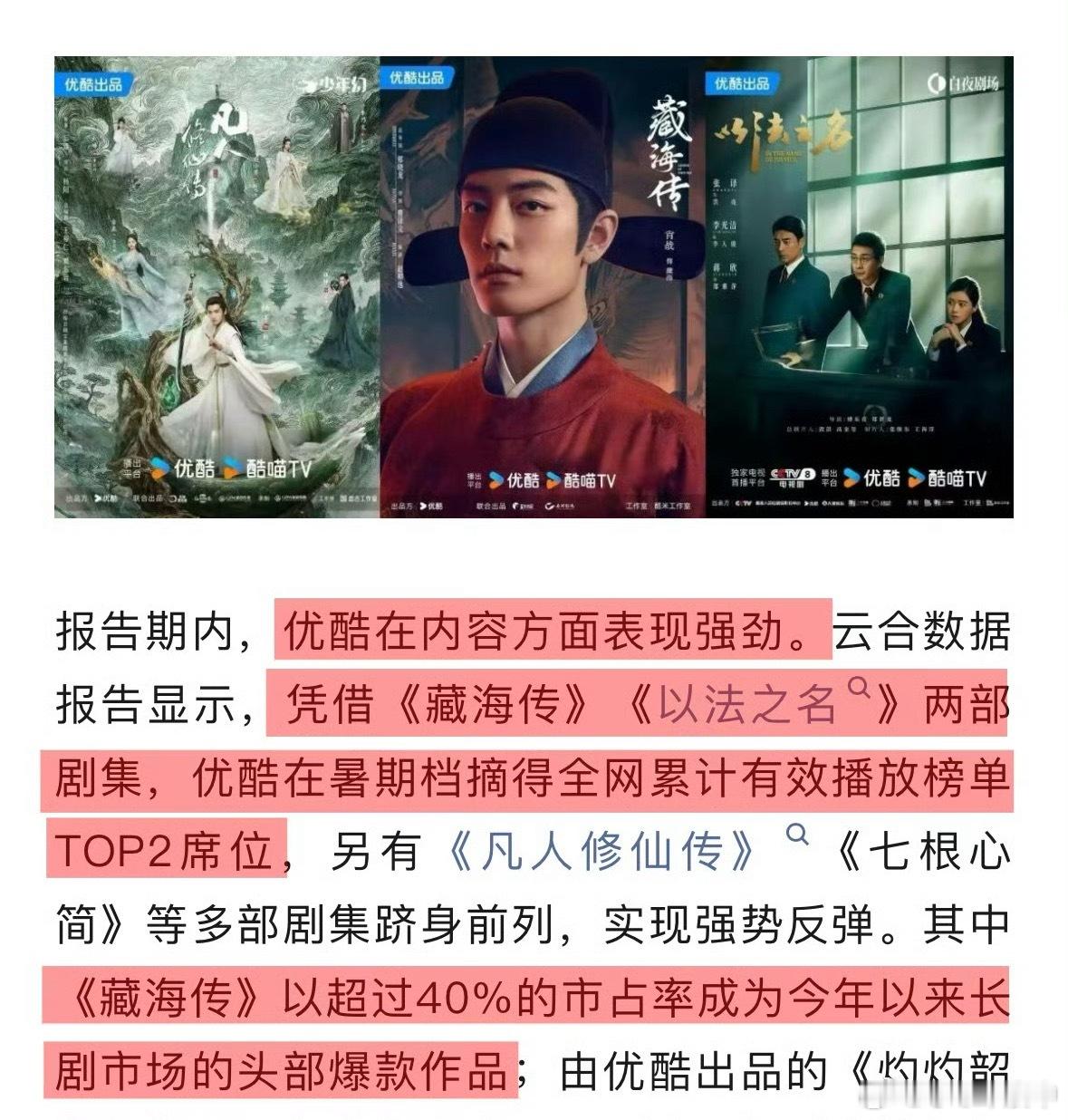 优酷恨不得到处说藏海传爆款赚钱!虽然不是暑假档也因为长尾给优酷暑假档赚钱了,现在