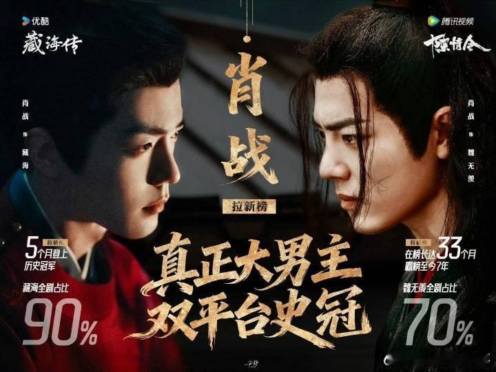 优酷藏海传战报~~优酷又又又发战报了👏优酷无数次认证肖战的藏海传TOP1☝🏻: (优酷👖:我看谁还不停的碰我家剧王 ) 藏海传韩国三平台登顶