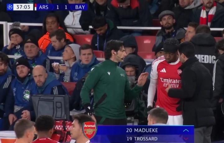 第37分钟特罗萨德伤退,马杜埃凯登场