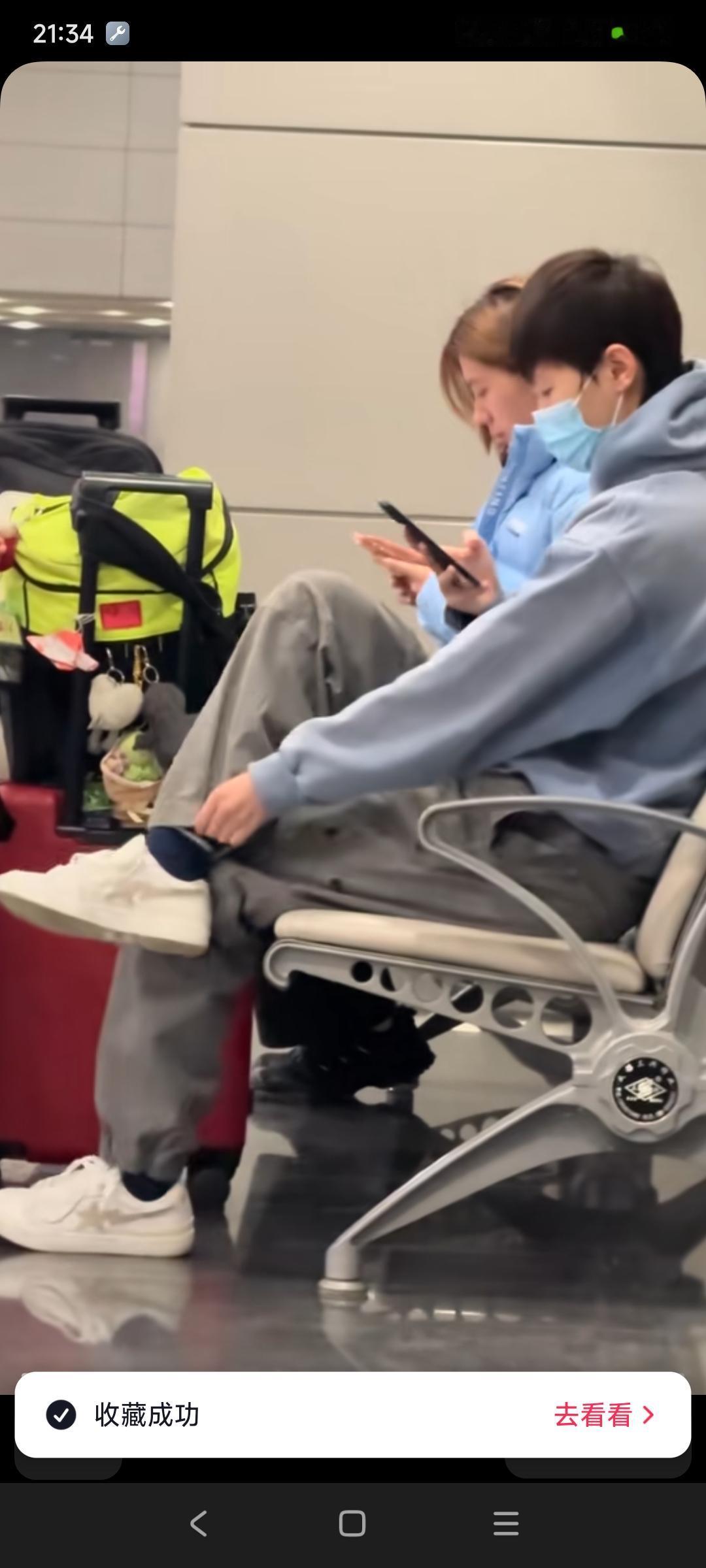 到达成都机场后等待机场工作人员管理现场秩序的王曼昱,与陈熠、徐奕一起坐在椅子上。 曼昱一边看手机,一边翘个小二郎腿,整理一下裤腿…… 挺惬意! 不过,到达酒店后没注意多久,曼昱就和国乒一同前往成都混合团体世界杯比赛场馆训练,每天定时定量训练,调整和保持状态,直到比赛正式开始! 期待曼昱赛场精彩表现!