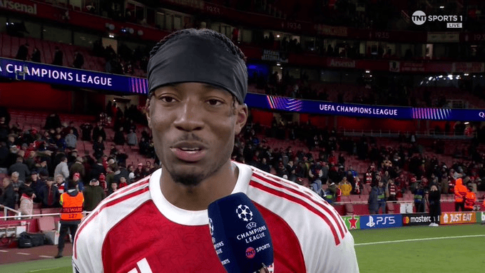 虎扑11月27日讯阿森纳边锋马杜埃凯在3-1击败拜仁慕尼黑的欧冠赛后,接受TNTSport采访。