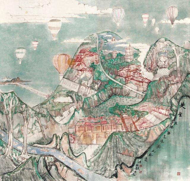 吴建福作品《共生》以独特的艺术视角表现泉州海上丝绸之路的历史遗迹,将开元寺、南街、清凉山、清净寺、草庵、洛阳桥等名胜古迹并置,和谐共生,传达出中国文化开放与包容的思想。