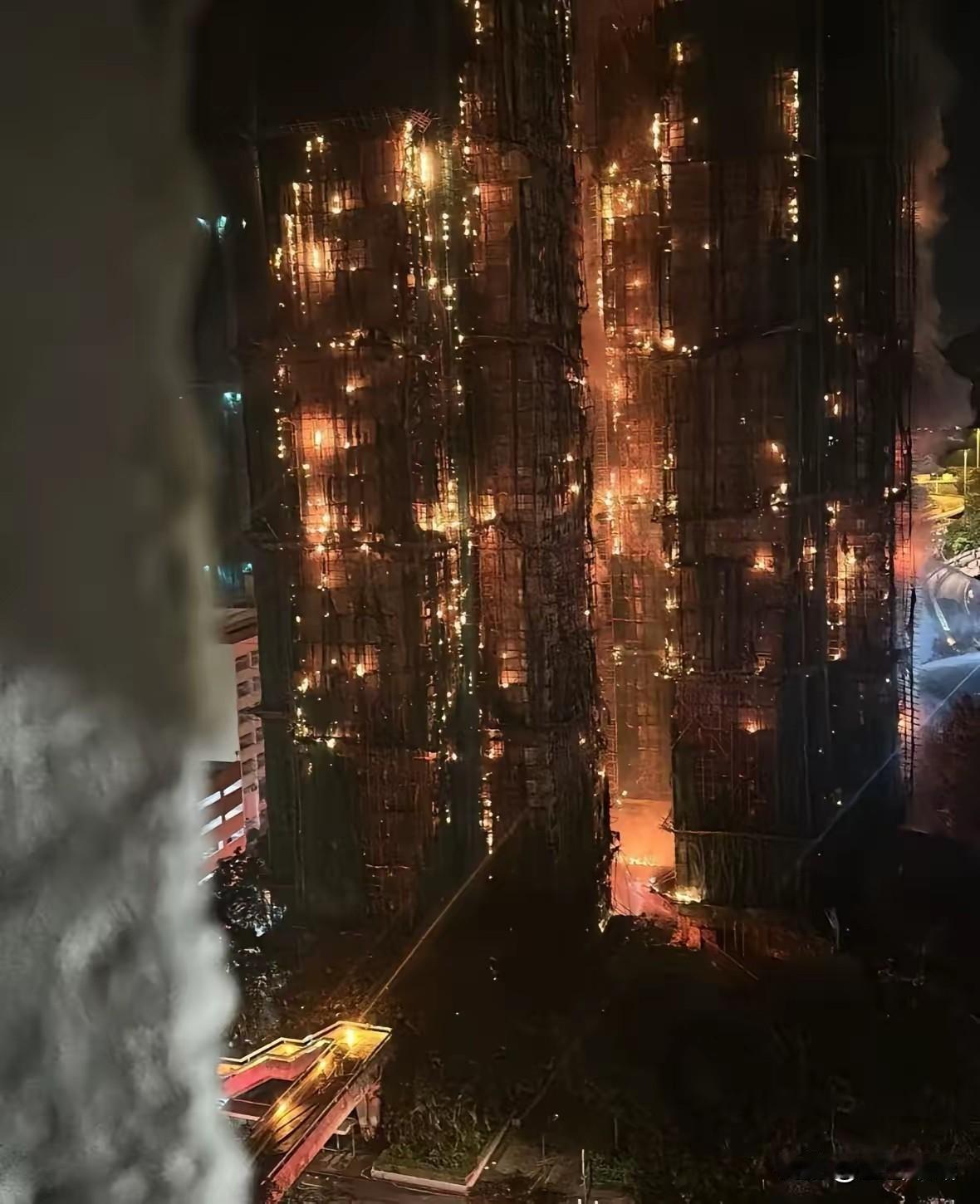 床前明月光 25 2025-11-27 08:39 主要是装修的防尘网太容易着火了,这才是其他栋被陆续引燃的核心,如果其他栋不在装修没有外网基本不会被殃及! 学做舔狗的每一天 回复 11-27 10:03 都说是竹子主要火源,如果包裹的绿色防尘网,烧得很快灭的也快,但是竹子比较耐烧,还会爆炸火光四溅。