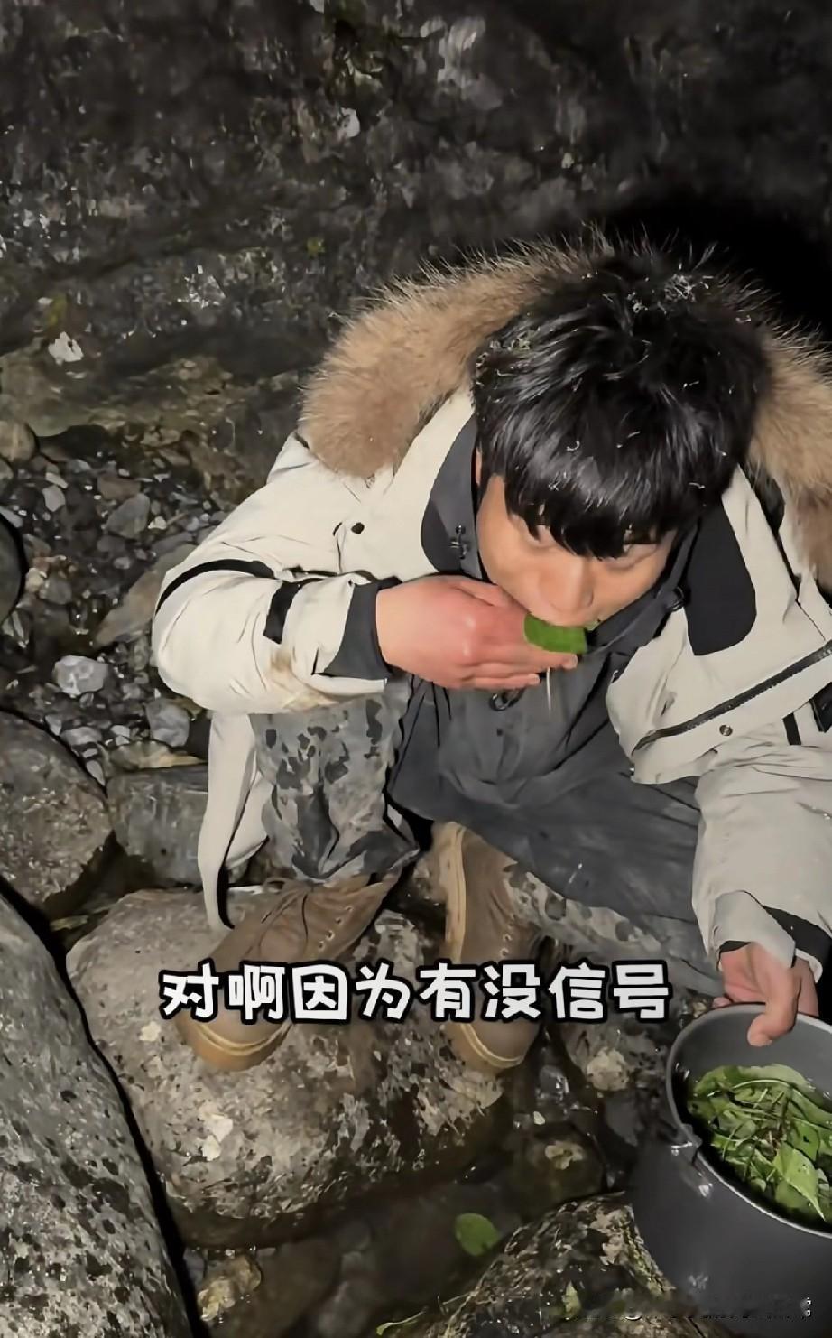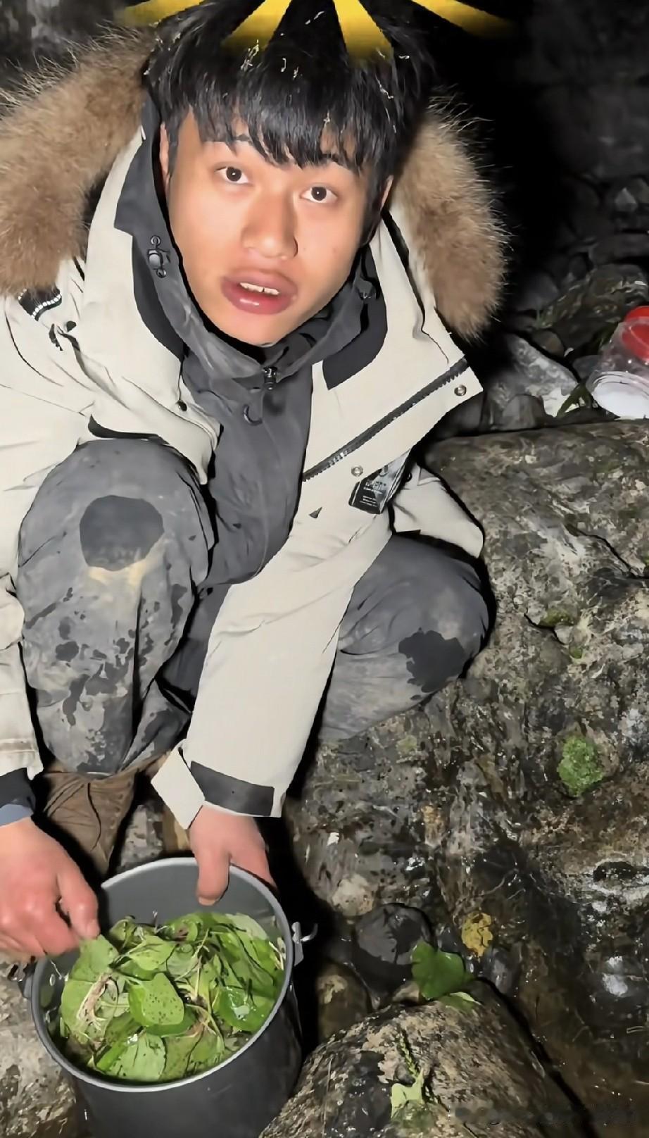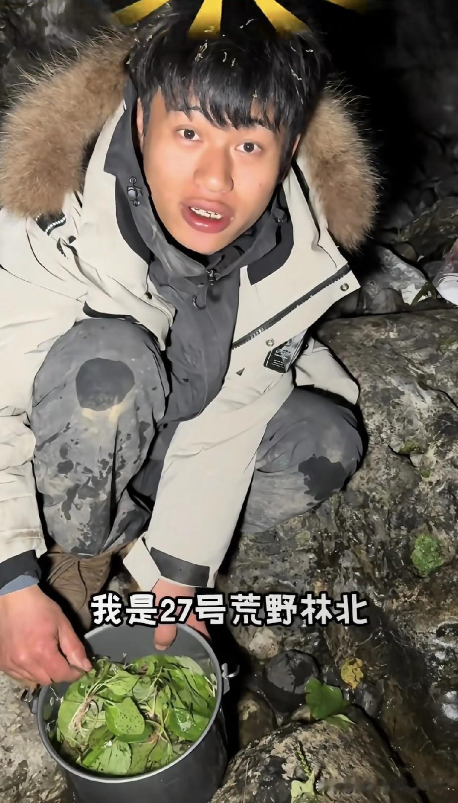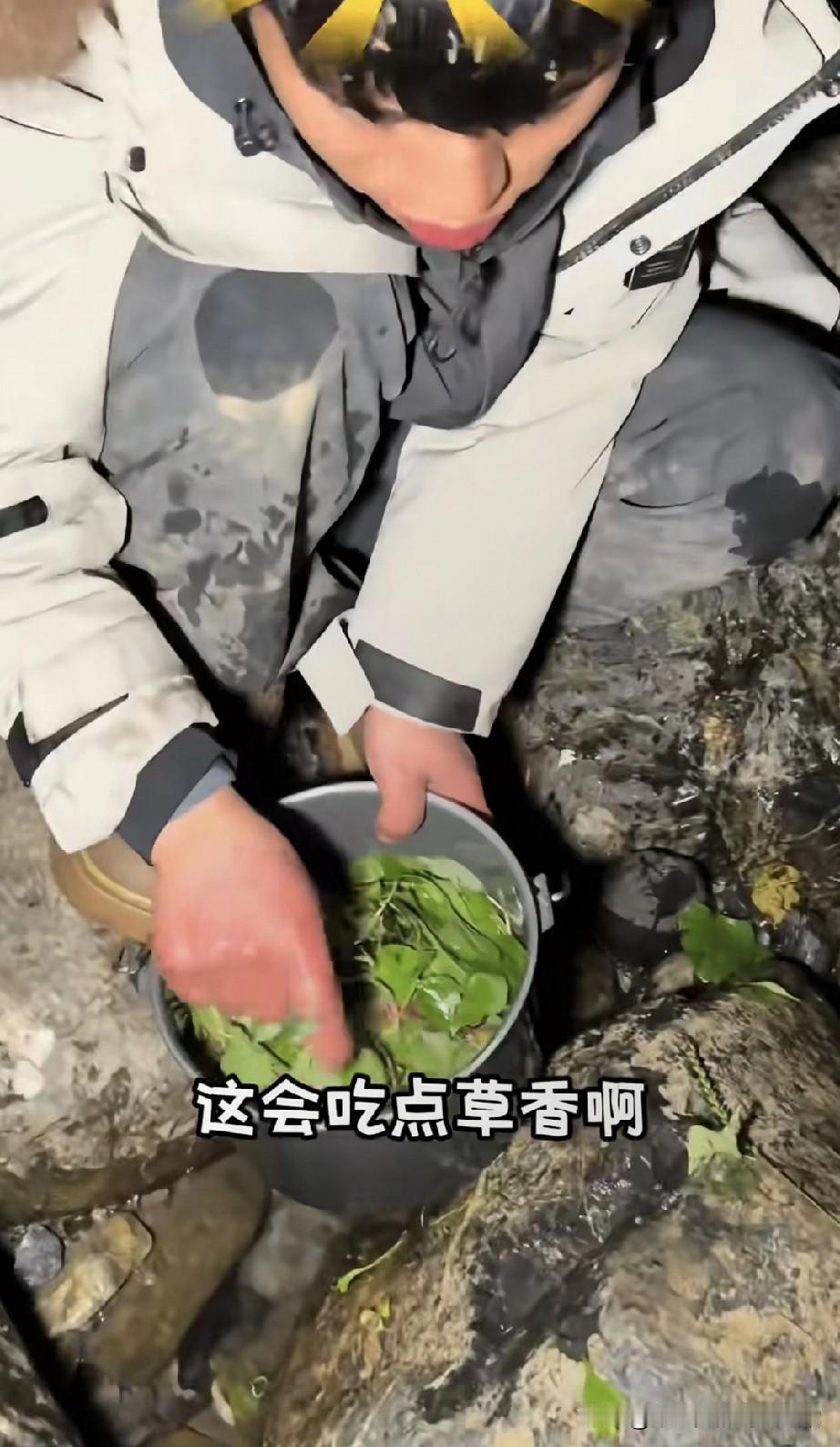 张家界荒野赛“吃草哥”爆火! 刚蹲到张家界七星山荒野赛的离谱现场:27号选手“荒野林北”裹着带毛领的羽绒服,蹲在没信号的山洞石缝里,捧着盆车前草+地丁草往嘴里塞,边嚼还边说“这草挺香”。 镜头里他裤腿糊满泥,旁边人吐槽“搬山洞里粉丝都看不着”,他却淡定报号打招呼。评论区直接炸了:有人说“才3天就啃草,是想退赛?”,有人替他喊冤“天天被针对至于吗”。 但最离谱的是——穿得像去滑雪,吃得像刚逃荒,这反差是真生存还是演剧本?更想问:野生植物随便吃,就不怕吃出问题?