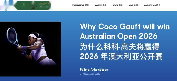 虎扑11月27日讯2025年11月27日澳网官方发文《为什么高芙将赢得2026年澳网冠军》预测高芙将为WTA2026澳网冠军,全文如下: