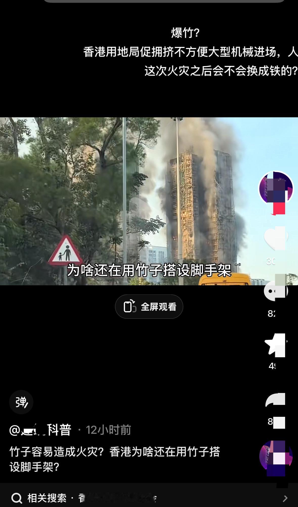 真相大白了, 香港为什么一直用竹子的脚手架, 可别以为是香港落后,或者用不起钢筋,而是因为香港有一个竹子协会。 要不是这次事件被曝光,估计大多数人都不敢相信,作为亚洲四小龙之一的全球金融中心香港,建筑工地上还保留着咱内地早就淘汰了的竹制脚手架工艺。 这竹制脚手架能沿用至今,竹子协会功不可没。他们跟港府申请保留的时候,理由也很充分:竹子成本低,经济效益高,搭起来方便,还环保。 这里面还有些别的事儿。部分搭棚的建筑工人抵制港府推广金属脚手架,为啥呢?他们担心自己收入受影响呗。而且啊,搭建脚手架要用的竹子,基本都得从竹子协会那儿来。 搞土木的朋友肯定清楚,内地老早就用钢材替换竹制脚手架了,为啥呢?主要是考虑到安全和易燃的问题。竹子露天放着,风吹日晒久了,干巴巴的,在农村生活过,家里有灶头的都知道,这玩意儿一点就着。 经过这次事件,竹制脚手架估计得重新评估评估,到底还能不能接着用咯。香港脚手架