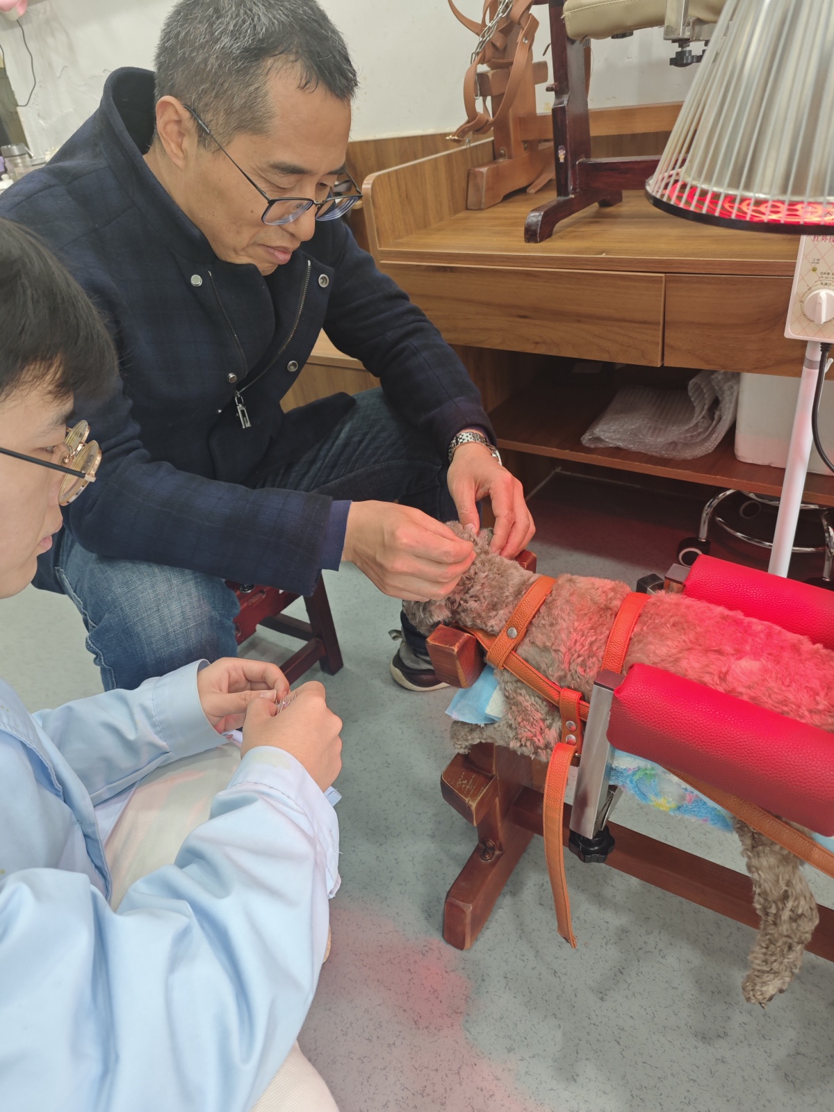 “给宠物针灸有讲究,不能生搬硬套穴位图。”银岭指着“可乐”瘦小的身躯解释,“中医里的‘同身寸’在宠物身上基本适用,狗的肋骨间距、腿骨长度也能当参考。要是宠物体型偏胖,扎针就要深一点;要是瘦,则酌情扎浅点,不然就达不到预期的治疗效果,还可能伤着它。”