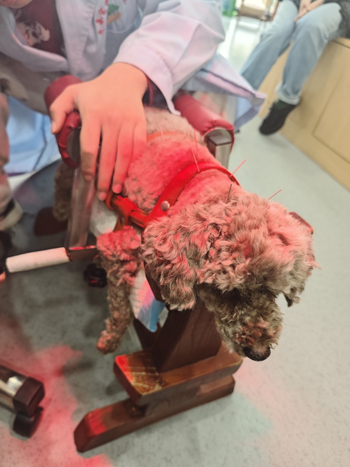 两轮针灸后,起针,解开束缚四肢的绑带,“可乐”被抱回到地面上,它慢慢站起身,试探着摇了摇尾巴,还主动蹭了蹭一旁等候已久的主人。“治疗是有效果的,起码现在能走、敢动了。”主人的声音有些发颤,说之前她总觉得,宠物老了就只能熬日子,没想到中医能让它少遭罪。