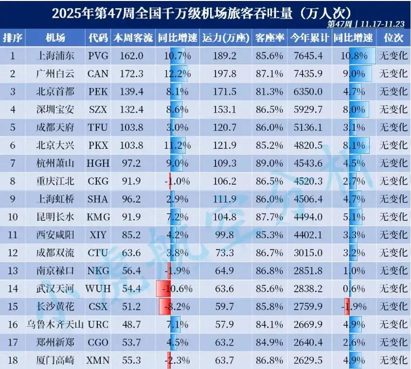 重庆江北国际机场不知什么情况,进入11月份,客流居然出现了微小的同比下降!而且是客流前10大机场中唯一一个负增长的!不妙啊!如果12月也继续负增长,将可能影响今年江北机场旅客吞吐量突破5000万人次大关啊!还有,对璧山新机场的推进而言,客流停滞不前绝不是什么好兆头哦。这可如何是好!? 我特意查了民航局11月的细分数据,江北机场当月客流同比降了2.1%,幅度不大但在前十机场里独一份负增长,确实反常。前10个月它还保持3%的增长,怎么突然掉链子?有人说是天府机场分流——毕竟天府到重庆主城高铁1小时,不少人贪那边国际航班多;也有人说江北近期砍了几条冷门国内航线,暂时影响了客流。不管哪种原因,12月必须追回来,不然5000万目标真要黄。 更头疼的是璧山新机场。2025只剩5周,连正式开工的消息都没见着。超大型机场从立项到投用,正常流程得6年以上,现在离2030年只剩4年多,就算明天动工,工期都卡得死死的。难道规划有变?还是资金没到位?之前说它是缓解江北饱和的关键,现在拖着不动,未来成渝双城的客流需求怎么扛? 旁边成都天府机场2021年投用,今年客流估计5800万,明年破6000万稳了。人家不仅航线越开越多,国际航班恢复得比江北快不少。重庆这边江北T3B还在扩建,但璧山新机场迟迟不落地,以后旅客排队值机、找停车位的麻烦只会更严重。 作为重庆人,我真觉得得抓紧。江北机场得赶紧优化航线,把流失的客流拉回来;璧山新机场的推进速度必须提上去,不管是协调资源还是简化流程,都不能再等。机场是城市的门户,也是经济引擎,成渝竞争这么激烈,重庆在航空这块可不能慢半拍。你们觉得璧山新机场为啥迟迟不动?江北客流下降还有啥原因?评论区聊聊。