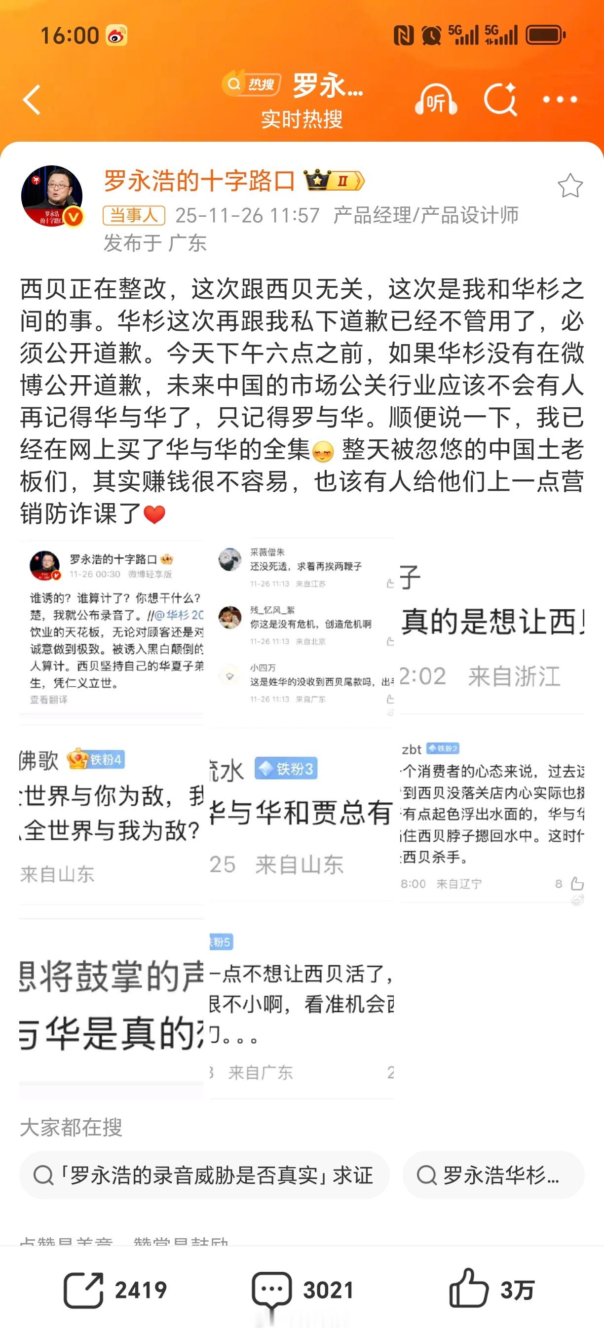 大家别等了。华与华不会道歉。罗永浩也不会放出录音。其实吧!老罗在网络上