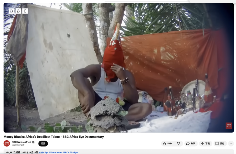 他们《非洲之眼》团队最近公布了一部名为《MoneyRituals:Africa’sDeadliestTaboo》的纪录片,对西非国家塞拉利昂(尼古拉斯·凯奇出演的《战争之王》就有关这个国家)的巫医产业进行了卧底调查。
