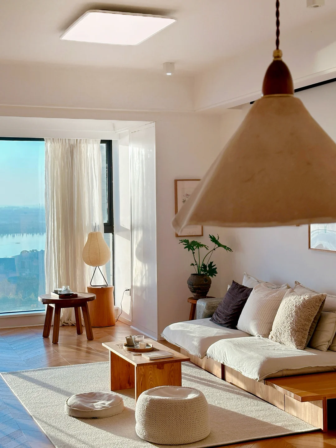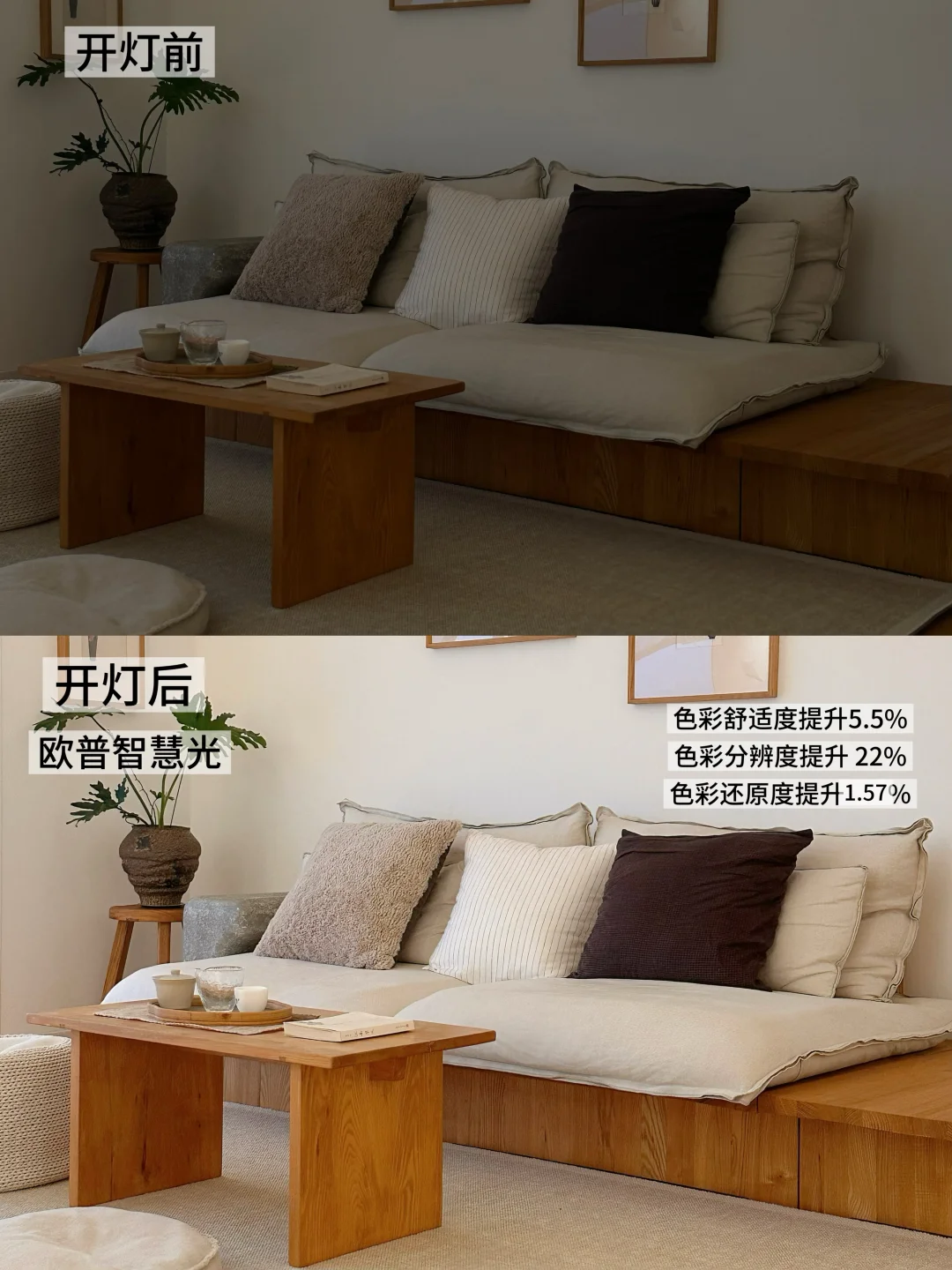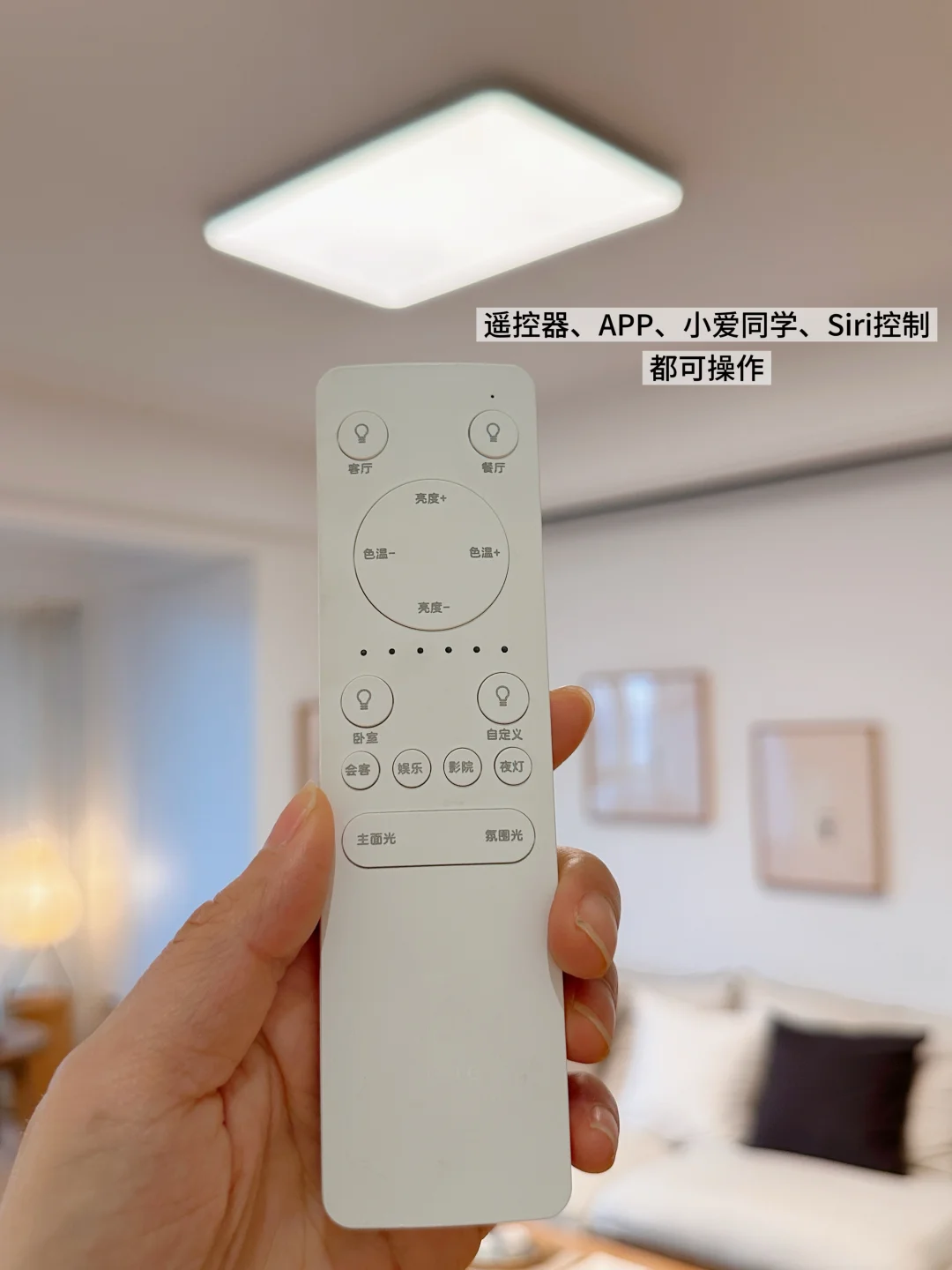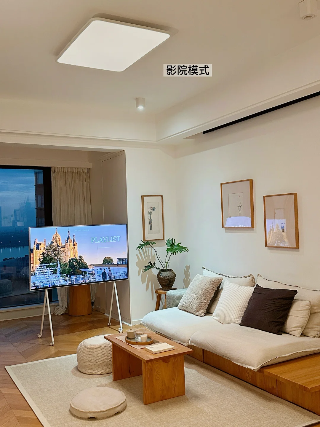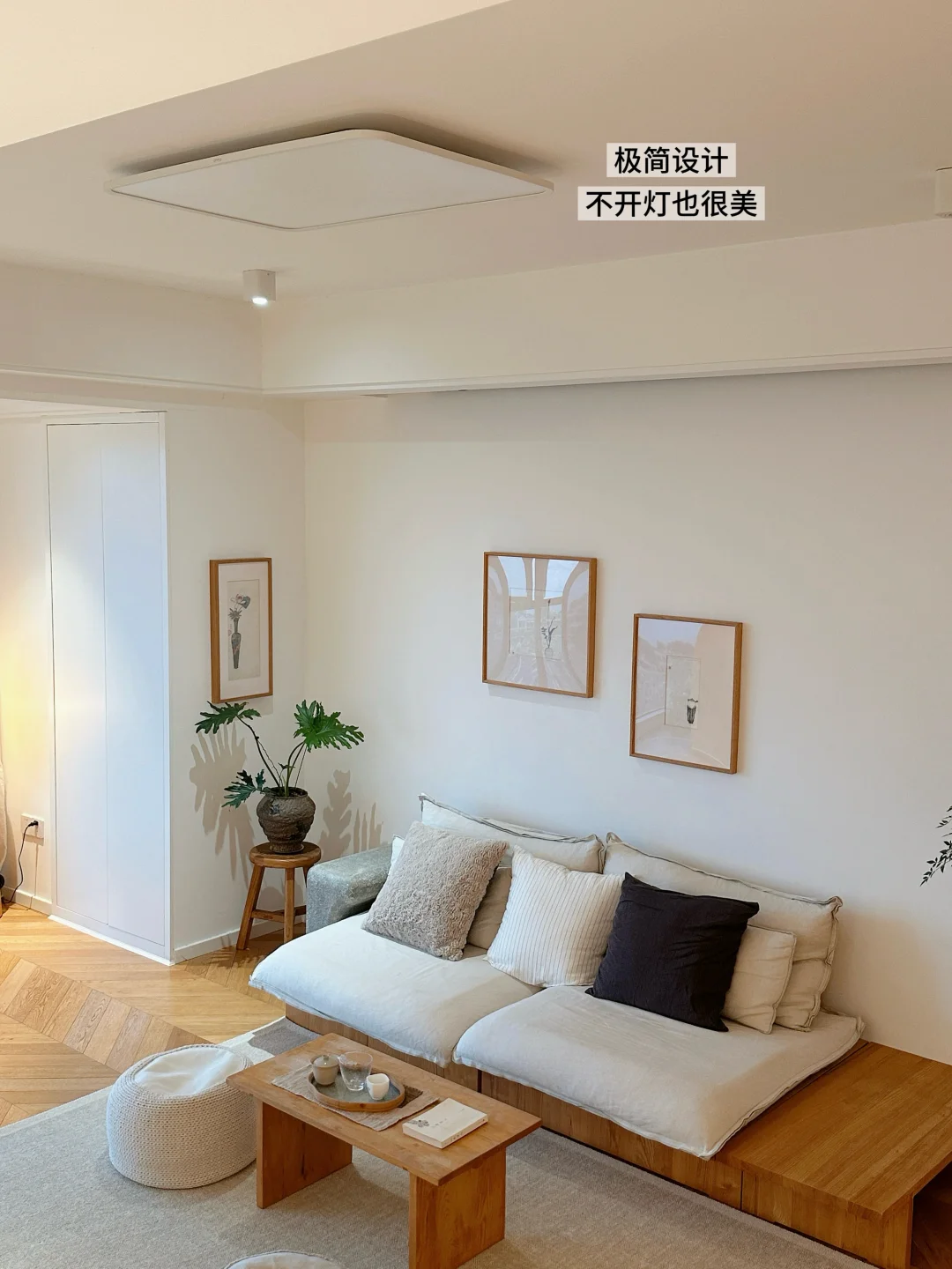 装修时就认准极简原木风,不做复杂吊顶、省略厚重电视背景墙,只靠浅原木色地板,再加上清爽柔软的羊毛地毯,主打一个通透治愈,不堆砌、不压抑,让小空间满是呼吸感。选灯时更是不敢马虎,既要贴合木系温润调性不破坏整体质感,又得兼顾日常护眼实用,挑来挑去还是锁定欧普—29年专业照明品牌,风格适配和护眼设计都戳中需求!👏 它的颜值真的长在我的心巴上!超薄机身完全不占空间,也不会让没吊顶的天花板显得光秃秃的,反而像一层温柔的“光影装饰”,和家里的实木地板、木质感家具无缝衔接,和谐到像本来就该在这里。 ✅光线更是把专业和舒适拉满,还藏着实打实的硬实力!联合武大教授定制的全光谱,像清晨透过木质纱帘的自然光,加上Ra97高显色指数,搭配它提升了色彩舒适度、色彩分辦度,色彩还原度三大重要指标,木桌的天然纹理更清晰有质感,绿植的鲜绿也更鲜活透亮,白天开灯不刺眼、和自然光无缝衔接,晚上亮灯不昏暗,家里每一处木色都更显温润,视觉上特别舒服。而且还获得南德TÜV 多项认证,无可视频闪、RG0无蓝光危害,窝在沙发看书、追一下午剧,眼睛都不发酸,宅家一整天也轻松,这就是专业品牌的护眼底气。 作为不爱动弹的宅家星人,APP控制真的太香了!躺着就能切换6种模式:看书时开主面光,明亮不压抑;独处时调氛围光,木色空间更显静谧;深夜起夜开夜灯,微弱光线刚好照亮路,完全不打扰休息。每种模式都和原木风的温柔感适配,没有一点违和感。🍺 🛋️现在每天下班推开家门,暖融融的灯光洒在木色家具上,没有复杂装饰的堆砌,小空间显得格外开阔通透。原来没吊顶、没电视背景墙的原木风小家,不用刻意“扩容”,选对一盏懂风格、懂需求的灯,就能让宅家时光更惬意,木系小空间也能有满满的呼吸感~