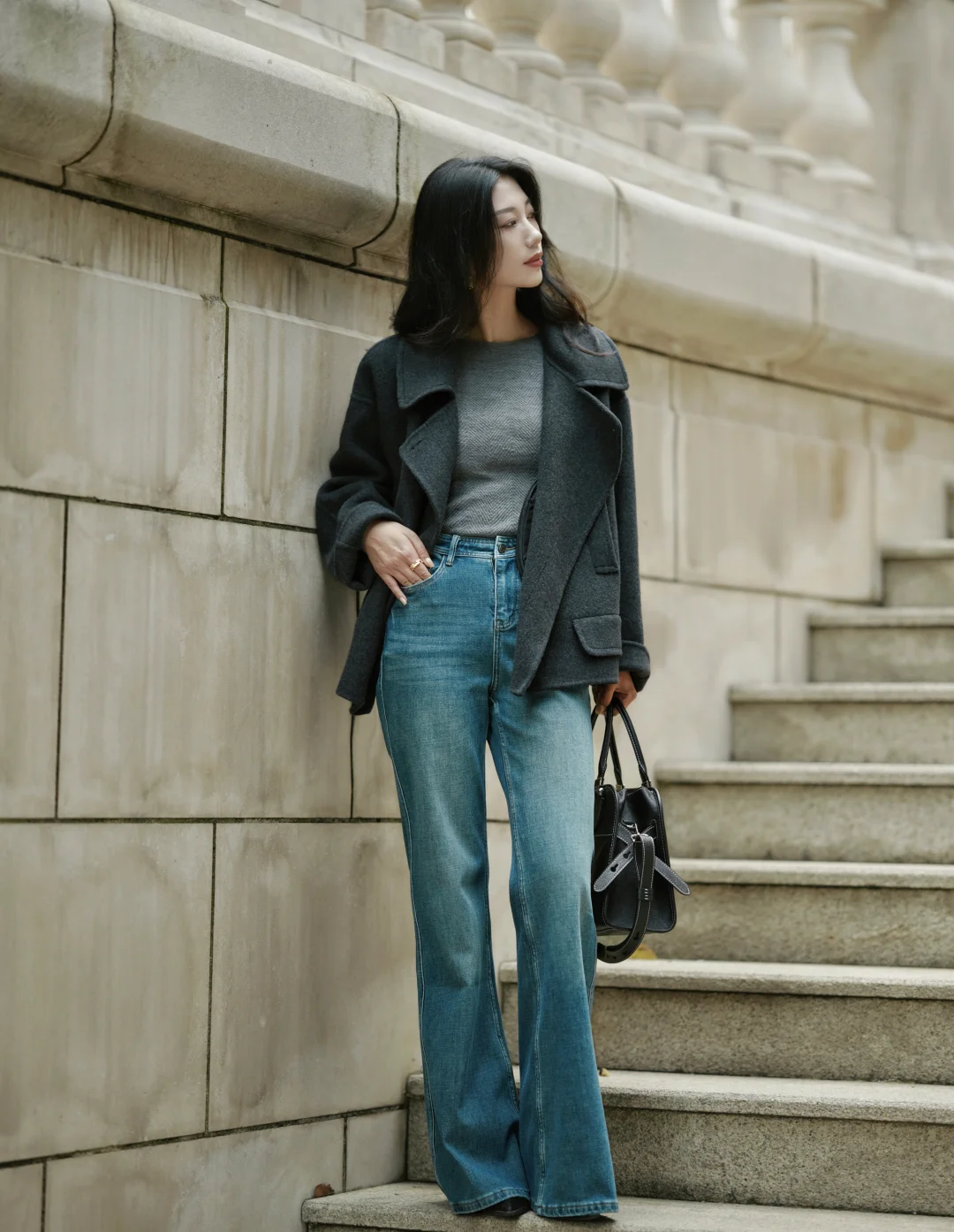 裹着一件宽松的灰色羊毛短外套,足以应对初冬的寒意,羊毛的质感软糯,不起棱角,与周身的气息融为一体。下身是一条洗得柔韧的牛仔裤,颜色是的舒展的淡蓝,朋友说极显瘦看起来却又毫无束缚。 是的,我喜欢这样的装束,气质大方又从容淡然,漫步走着,不去思量方向。风穿过衣料的纤维,也穿过时间的缝隙。这一刻,与周遭的一切仿佛达成了一种温和的谅解——不与流光争辩,只与自己的脚步交谈。