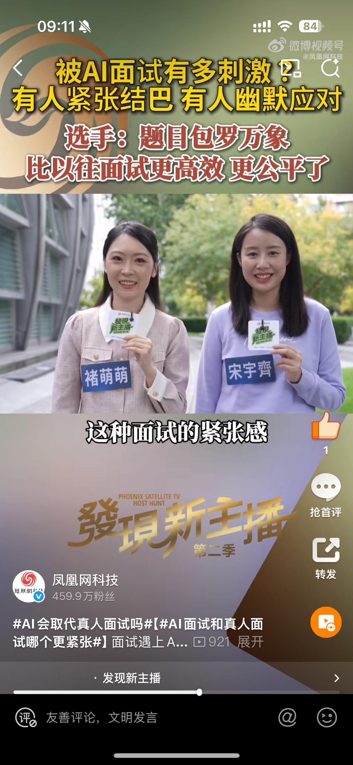 【】面试遇上AI面试官,新主播选手们的反应五花八门,有人紧张结巴,有人幽默应对。AI考官也奇招频出,包罗万象的考题快速精准地考察着选手们的临场反应、知识储备、心理素质。选手:“完全没想到节目组会用这种方式面试,AI靠海量数据做出判断,为面试提供了更公平的环境。”