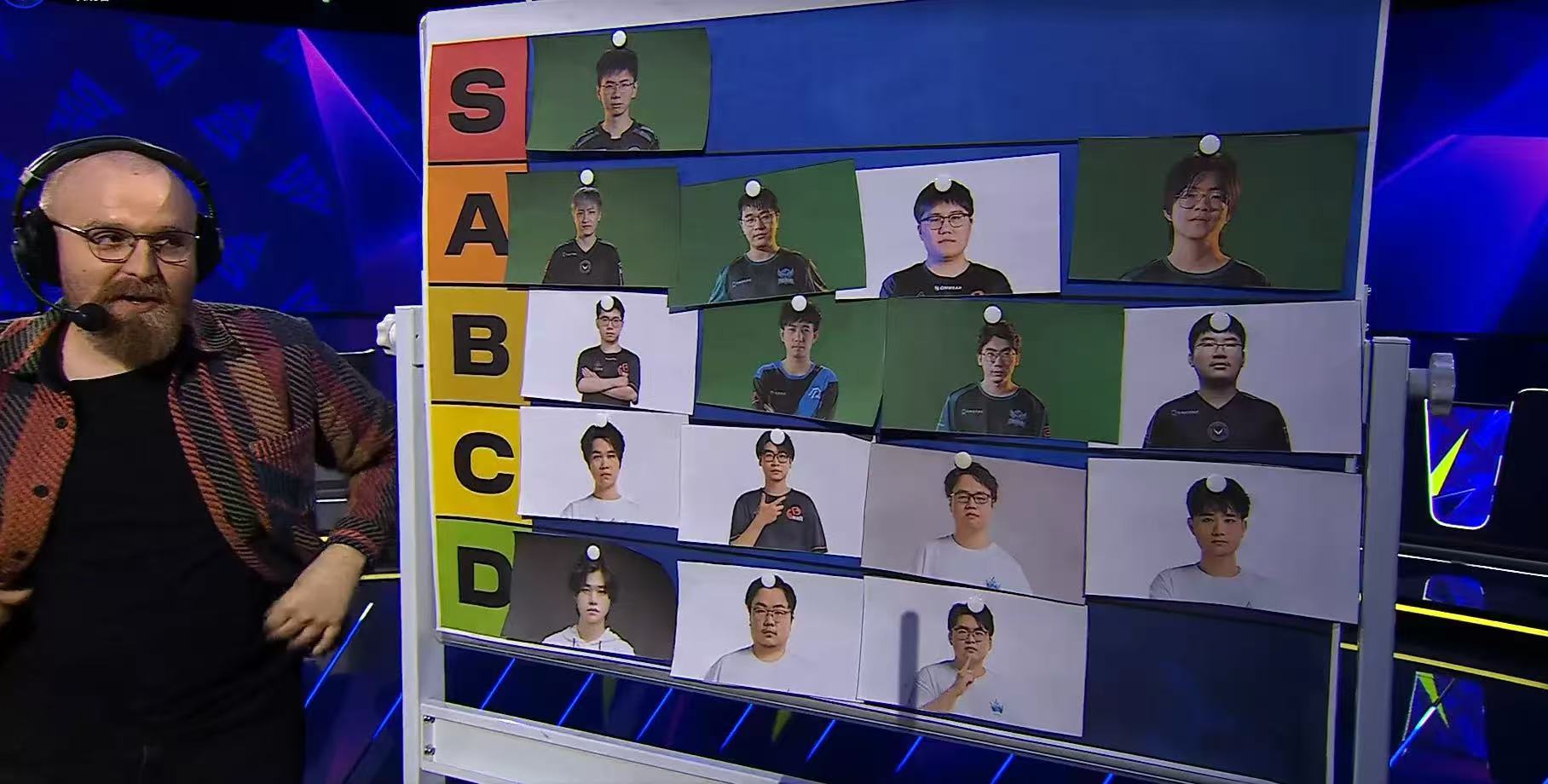 Blast英文主舞台(有CCNC和MISERY两位前职业选手参与)在场间给所有参加了这次比赛的中国选手做了一个强弱评级,结果如图,我挑了几个大家比较感兴趣的选手做些说明,只能说还好这游戏不是第二天小组赛打完做的,否则XG这哥几个人均降1级真不过分没有莫言和xNova是因为评级只针对中国籍选手而非在中国战队效力的选手;森哥一开始在B/C之间,主舞台给出的理由是Fy已经很久没打职业比赛,最近几年也没有效力过强队,再加上上个赛事PGL有几盘的发挥着实一般(特别举了屠夫的例子说他那盘打的很烂)所以按现在的标准看就只能是这个评级;X哥是唯一一个S级,CCNC对他的评价很高,主舞台一致认可没有异议;shiro被排在A级,主舞台评价Ame短暂休息那年,shiro仿佛就是西恩刀塔carry的希望,尽管现在的shiro仍未追上超越Ame,但也算是保住了西恩carry的下限Y队被排在A级,如果是历史排名绝对是S级,但如果只讨论当下的表现最多只能给到A;Ame也被排在了A级,最开始CCNC提议把Ame放到S级毕竟才刚拿了TI亚军,女主持也同意说确实得给S级那排多加个人了,但有位嘉宾抗议说Ame在休息过后打的并不好,他在PGL的瑞士轮经常出现死亡比击杀数还多的情况,这对于一个carry来说是不可接受的,所以如果要严格按照当下的表现来做选择那Ame只能排到A级第一位;Boboka成为唯一一个被贴在了这块板子背后的选手,嘉宾称他是彻头彻尾的boboka黑子,他讨厌bbk经常做搞子的行为