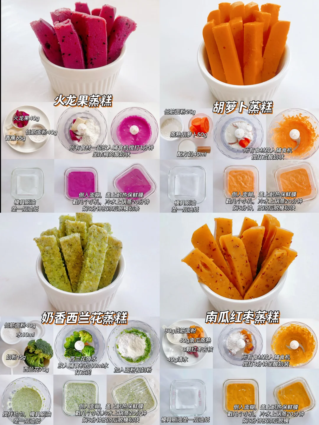 之前的蒸糕,很多姐妹问我无蛋版 今天分享12款敏宝也可以吃的手指食物蒸糕! 配方奶搭配食材,香甜美味,没牙的宝宝也能吃哦! 做法简单,还能锻炼宝宝咀嚼能力和抓握能力,安排起来吧! . ⭐️具体做法请看图 宝宝辅食蒸糕手指食物敏宝辅食不重样宝宝辅食过敏宝宝辅食分享无蛋辅食新手爸妈枕边书
