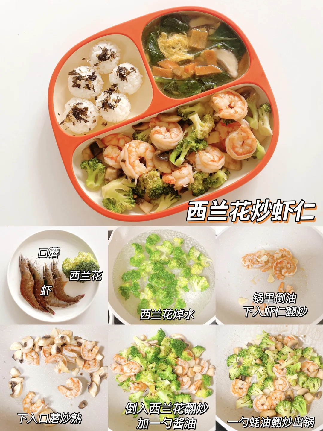 Day2:西兰花炒虾仁+米饭+鲜蔬芙蓉汤