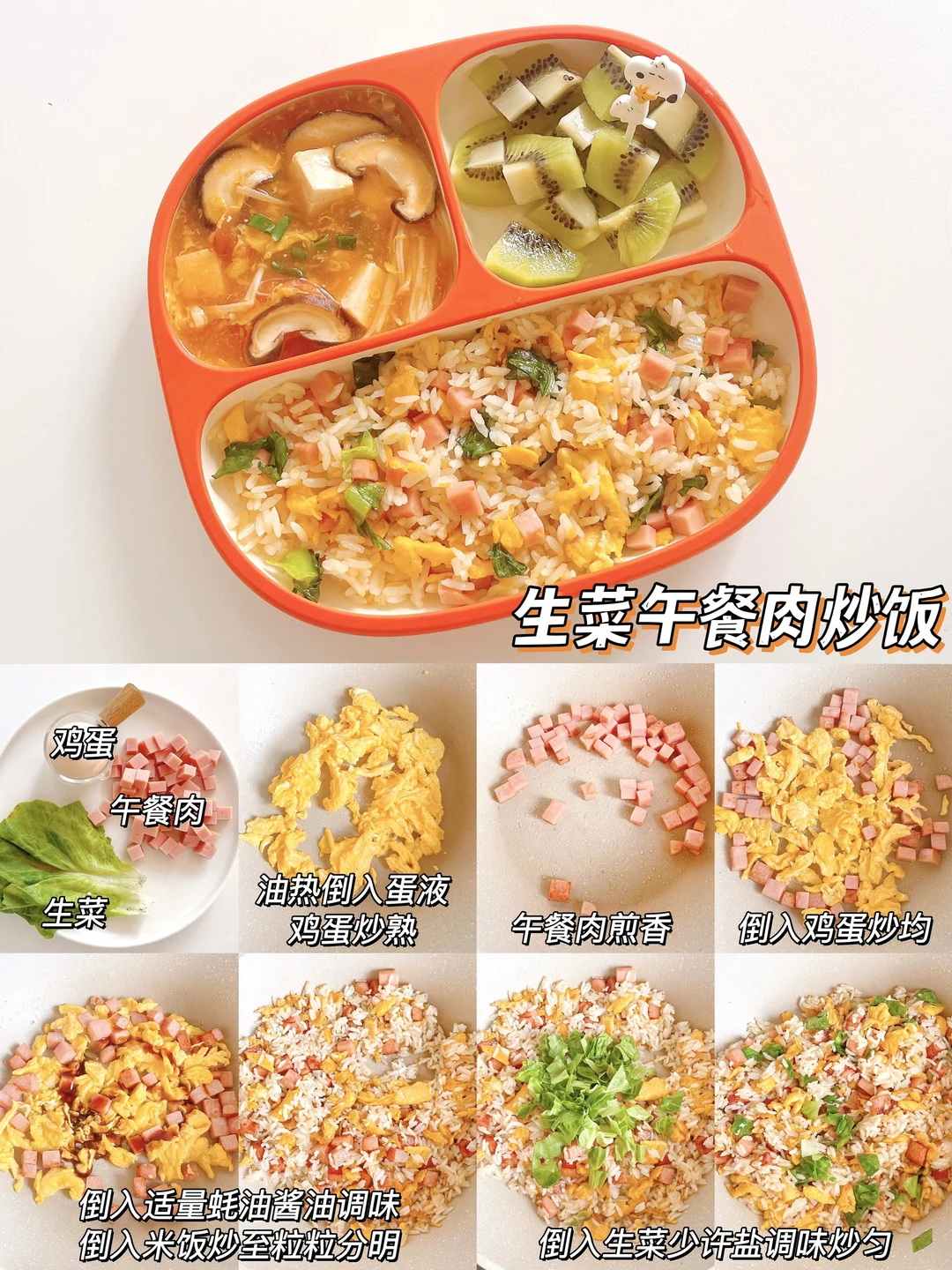 Day3:生菜午餐肉炒饭+番茄菌菇豆腐汤+猕猴桃