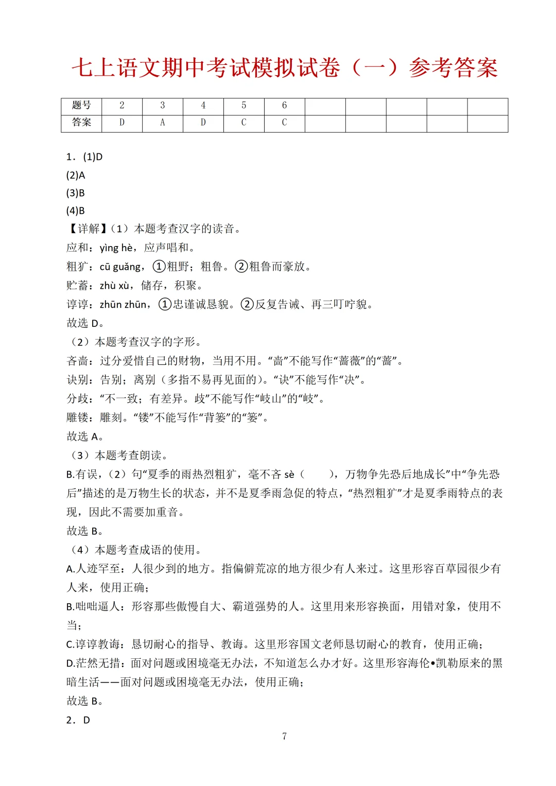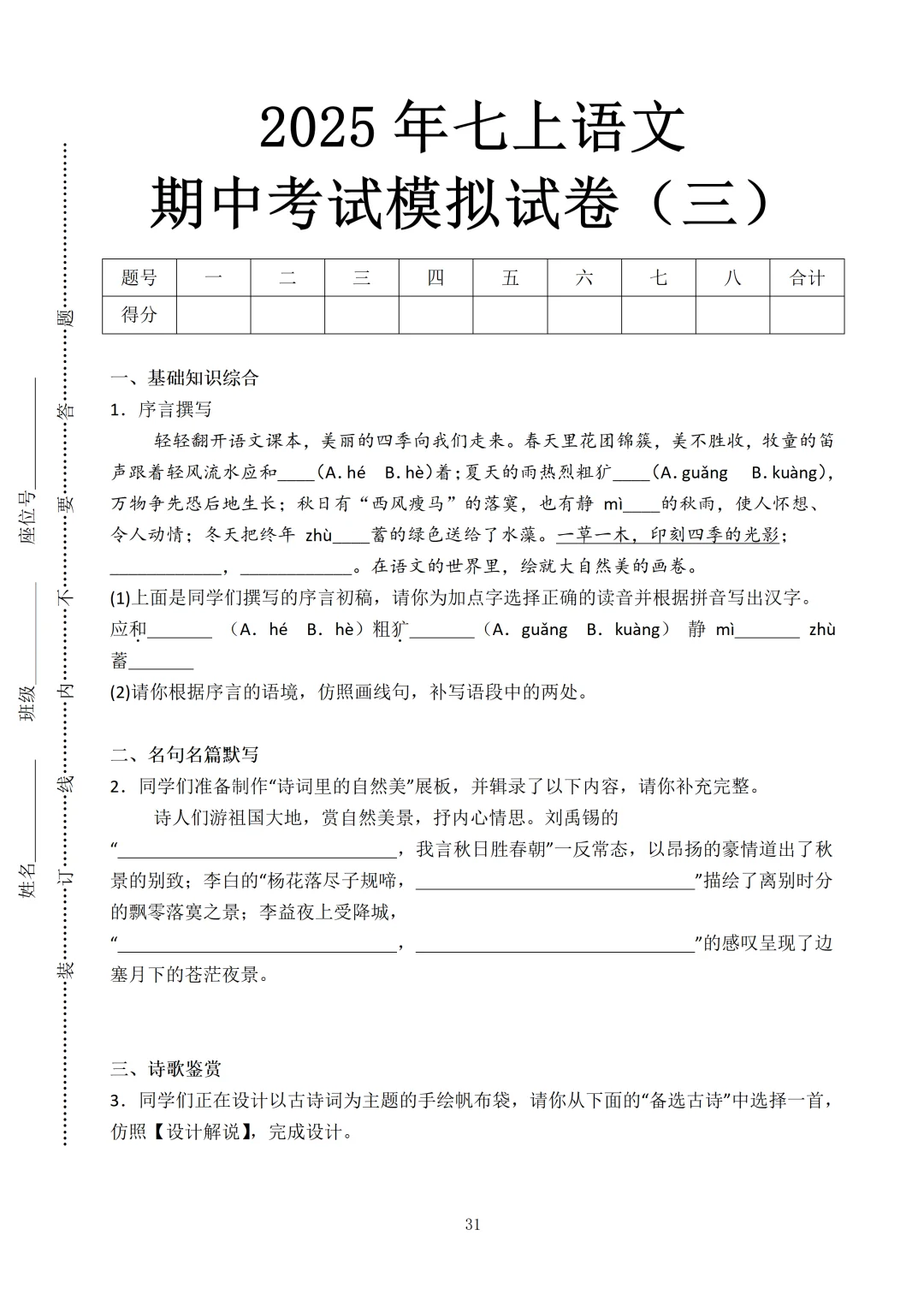 [勾引R]最近好多家长:“老师,有没有七年级上册语文期中考试的试卷啊?娃马上要考了,想让他练练手”🙋️