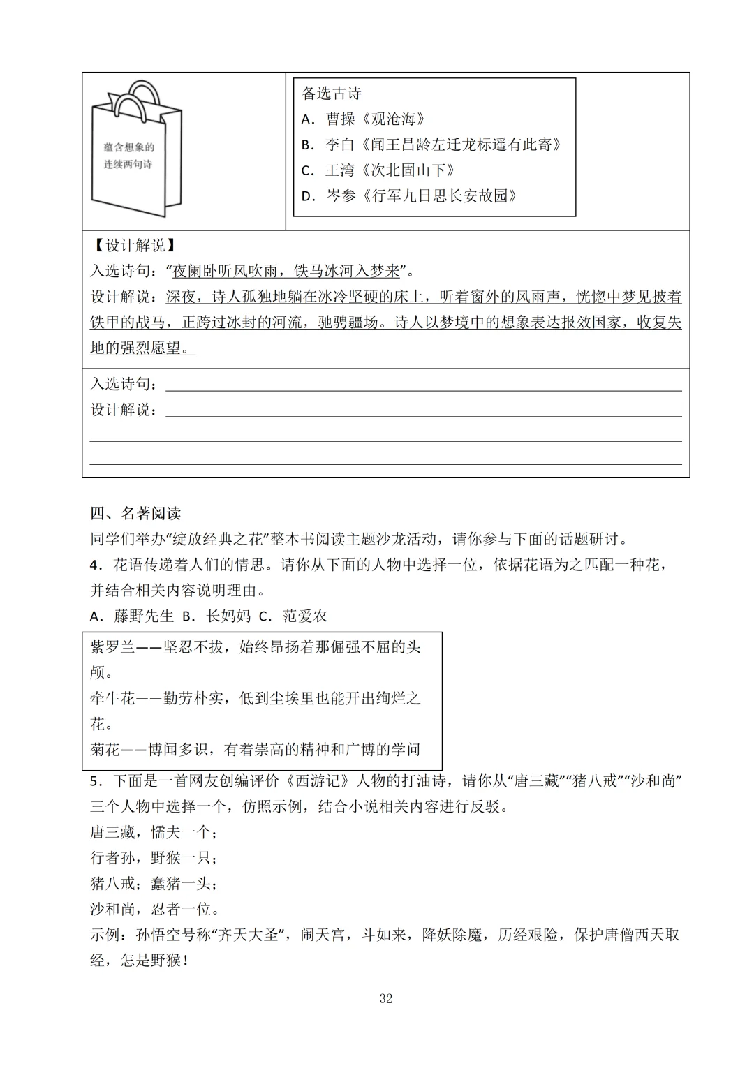 每个板块难度升级!阅读板块材料更丰富,理解难度会加大。增加了非连续性文本阅读,要求紧贴材料作答。增加了名著阅读题,要掌握人物情节和人物形象。文言文考察课内外对比阅读,不仅要理解课内课本内容,还要学会迁移知识。