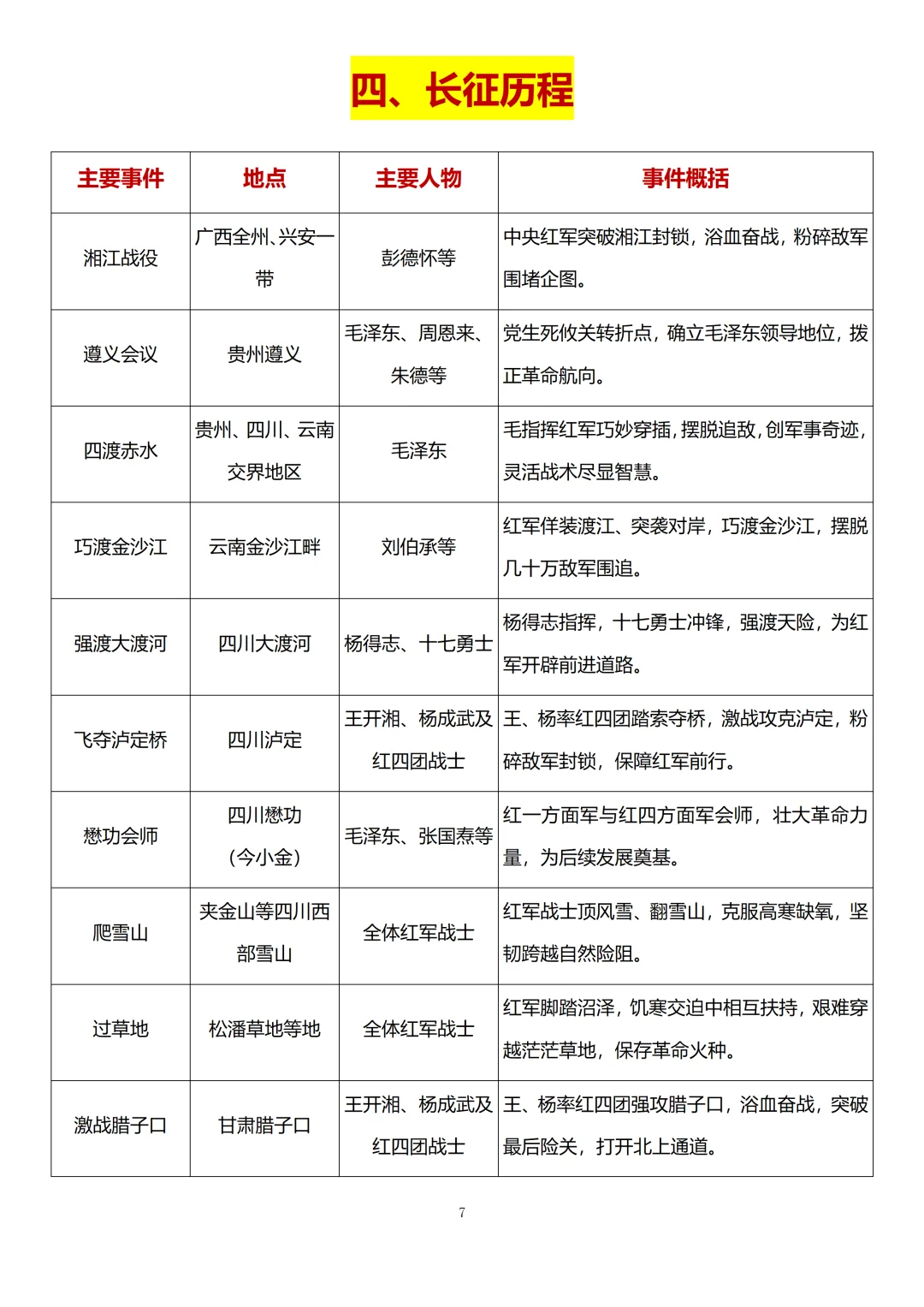 考试常考长征事件与人物的对应关系,或者给出情节要你填事件名称。例如四渡赤水是毛泽东指挥红军,摆脱追敌,创军事奇迹;遵义会议是毛泽东、周恩来、朱德等人在贵州开展的会议,是党生死攸关的转折点。我们要注意事件、地点和人物不能混淆。