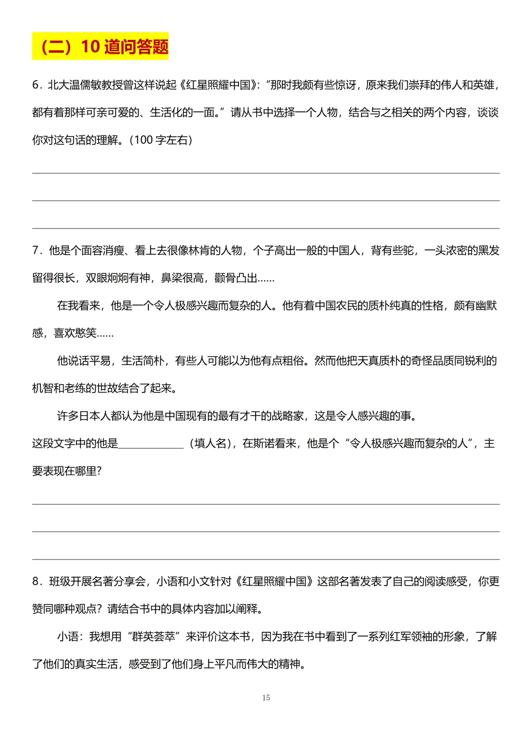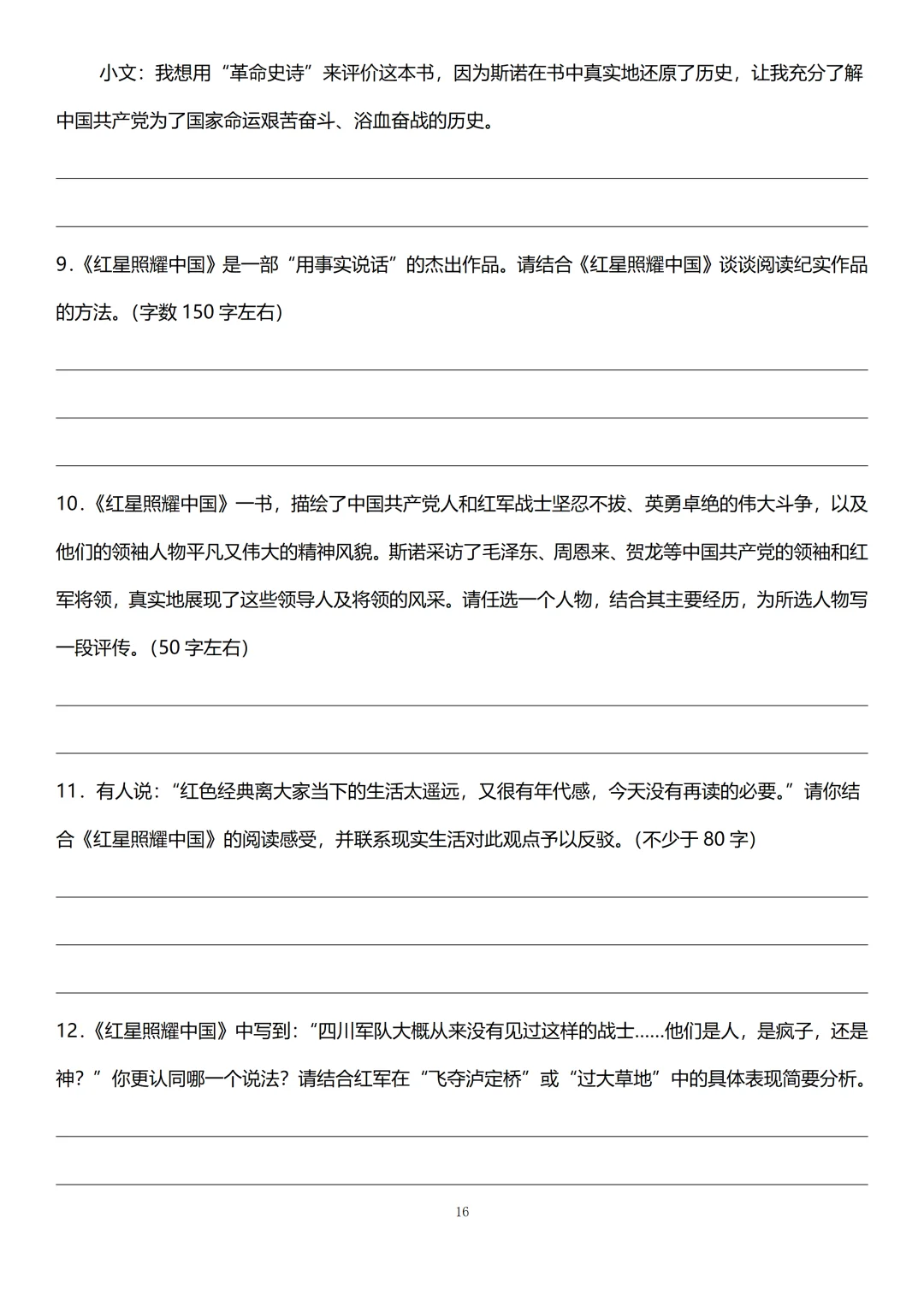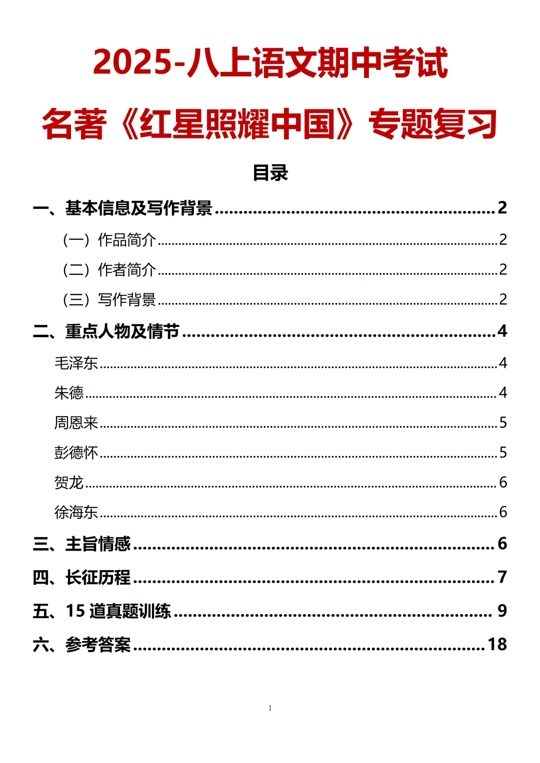 [拔草R]八上期中考试名著板块主要是考《红星照耀中国》。小蓝老师看了上百张全国各地八上的期中考试试卷。连夜肝出这份「八上期中考试名著专题汇总」,从《红星照耀中国》的基本信息及写作背景、重点人物及情节、主旨情感到长征历程,4类必考点和15道真题全覆盖。语文要想得高分,名著板块必须拿下[派对R]