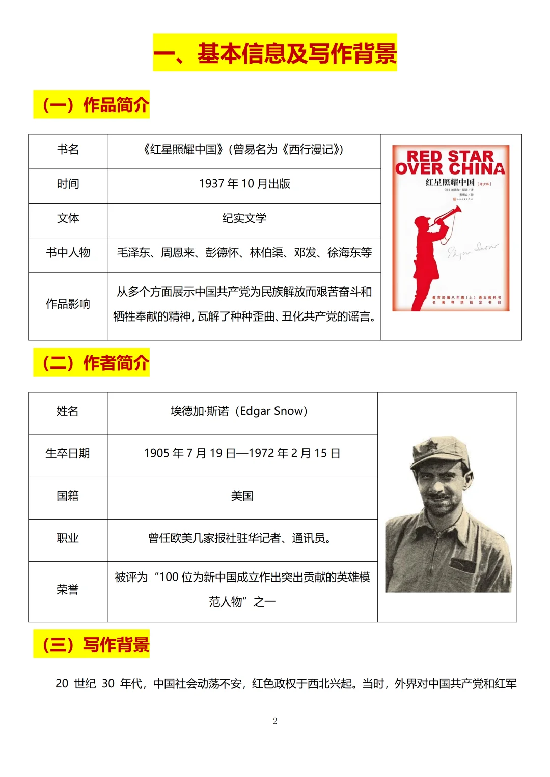 首先要了解《红星照耀中国》的作品简介、作者简介以及写作背景。这些都有可能会在选择题、填空题或表格题出现,考察你对名著基础知识的掌握程度。