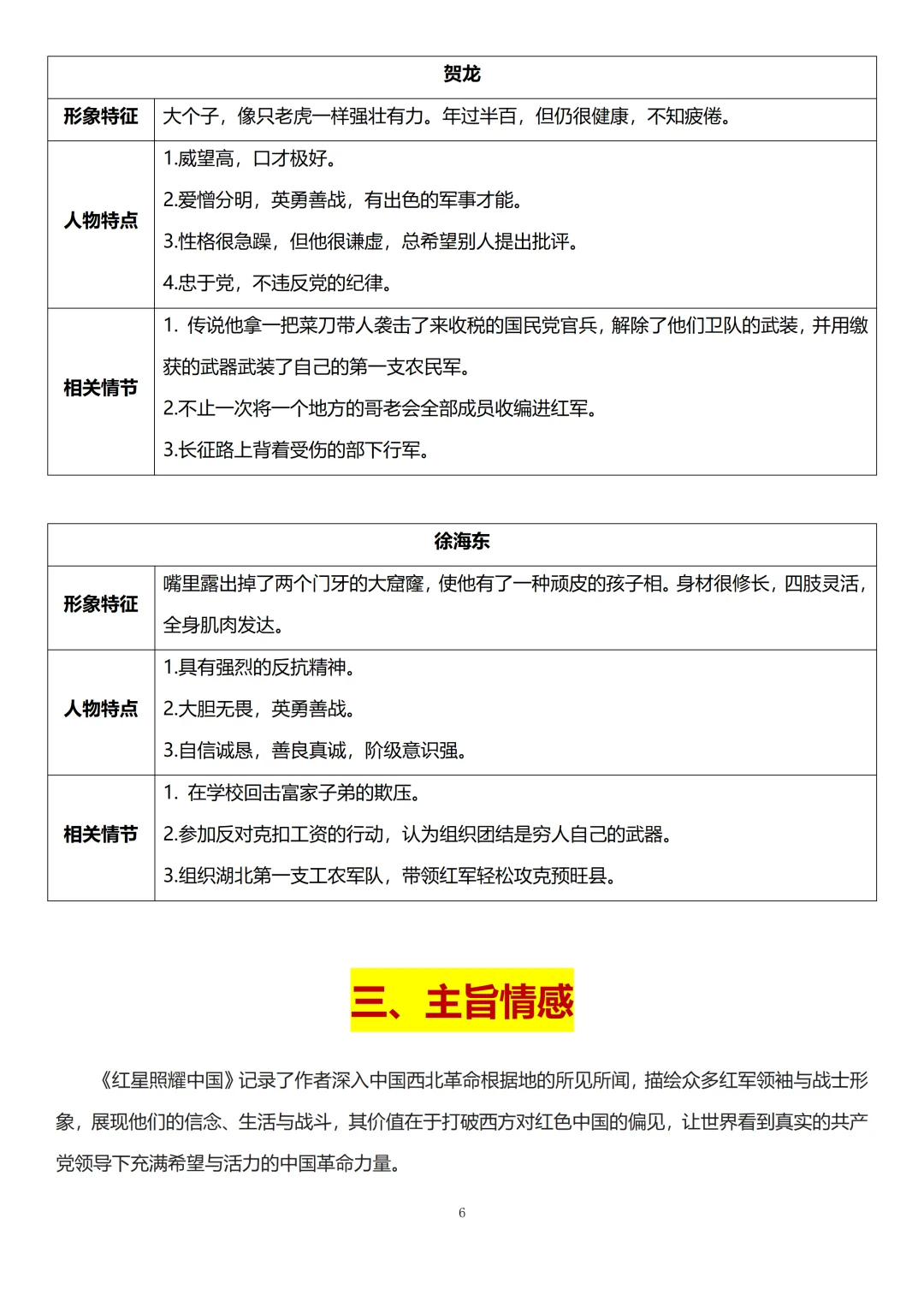 期中考试最常考的就是人物对应的情节以及结合具体情节分析人物形象,必须把《红星照耀中国》的重点人物及其情节都背下来。重点人物包括毛泽东、朱德、周恩来、彭德怀、贺龙、徐海东。选择题最常考的形式就是问你哪一情节不属于哪一个人,表格题大多给你情节要你填人物名称/形象,问答题则会要求你结合具体情节概述某一具体的人物形象,分析形象时注意要与情节对应。