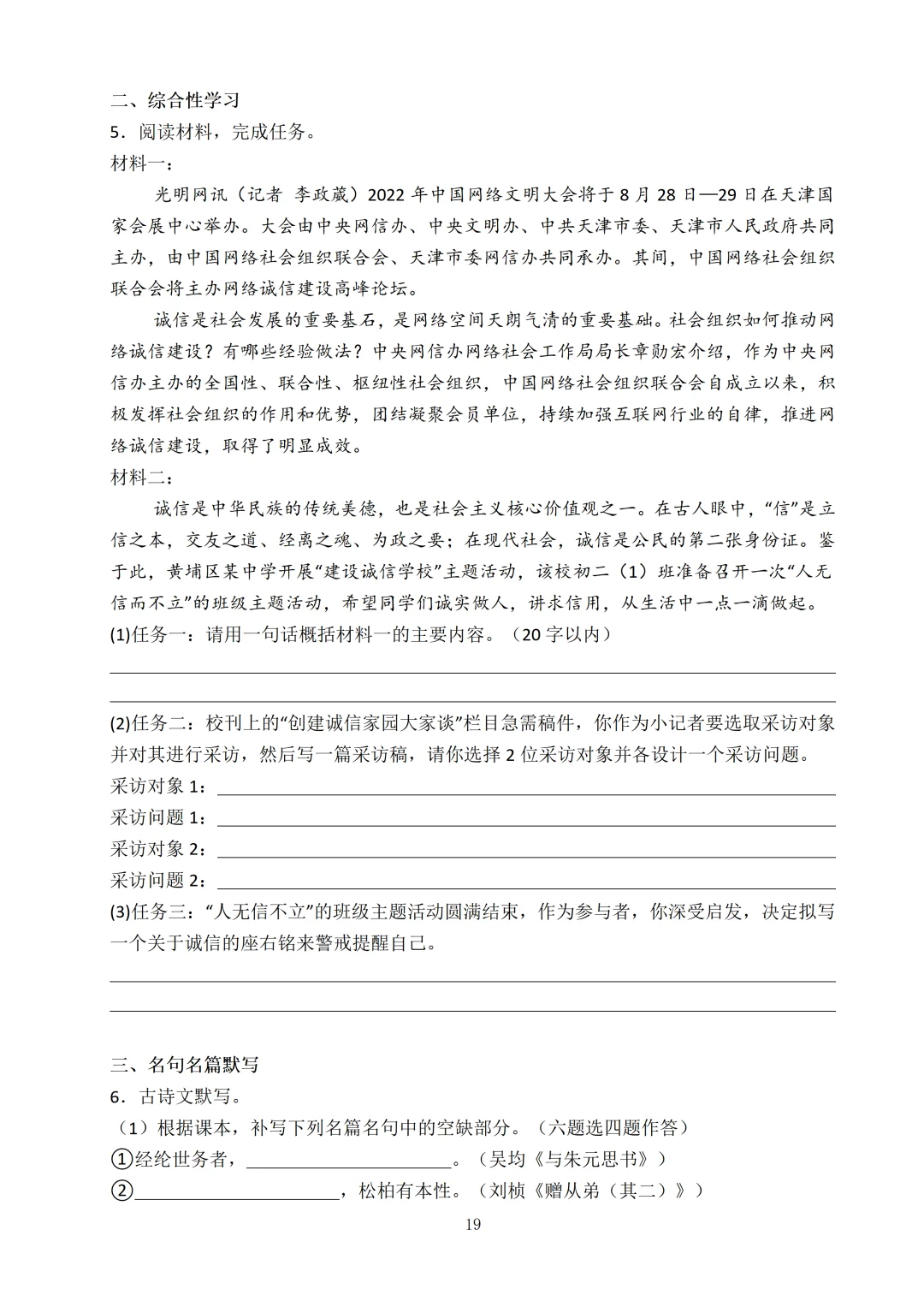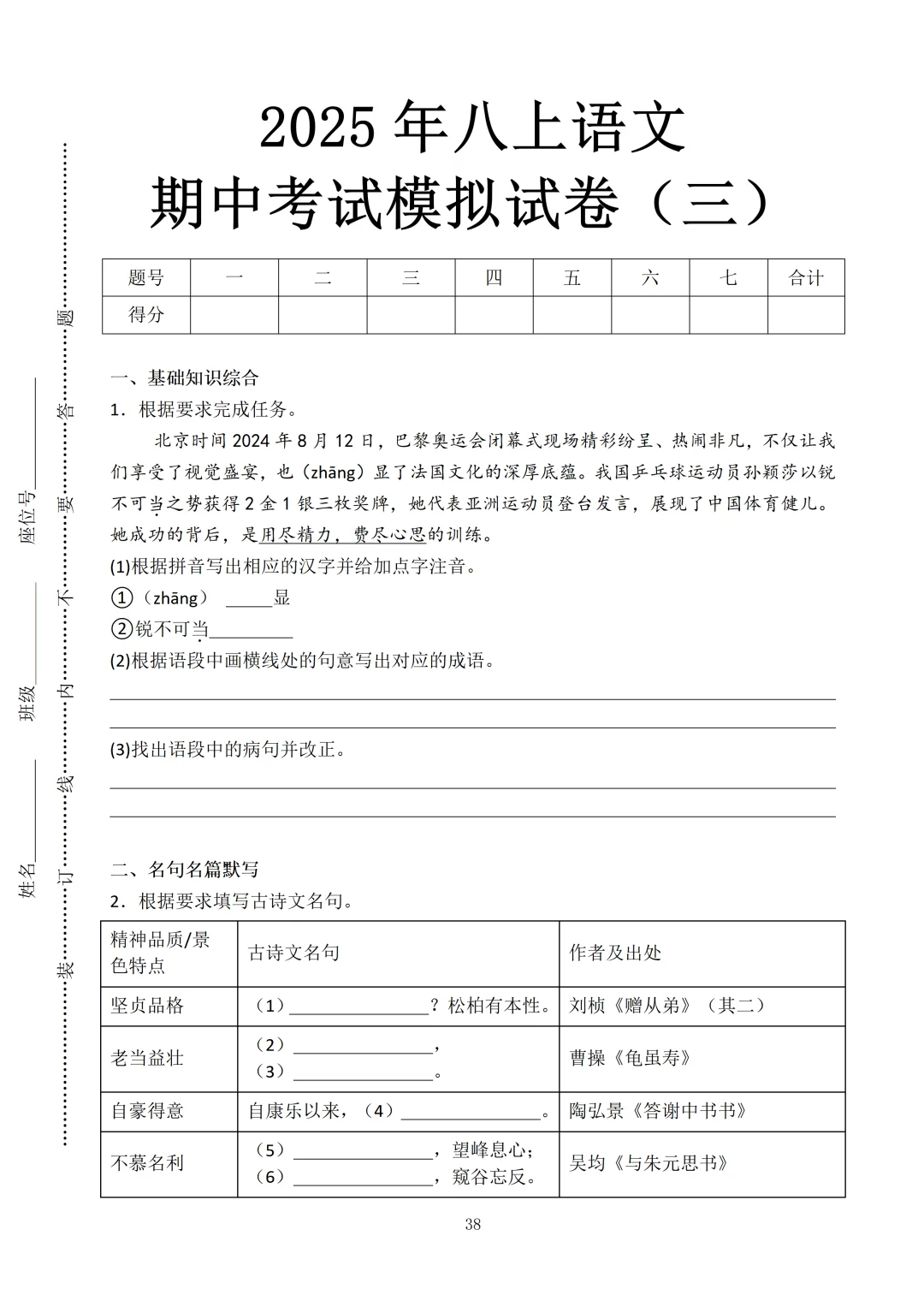 [皱眉R]最近好多家长:“老师,有没有八上语文期中考试的试卷啊?娃马上要考了,想让他练练手”🙋️