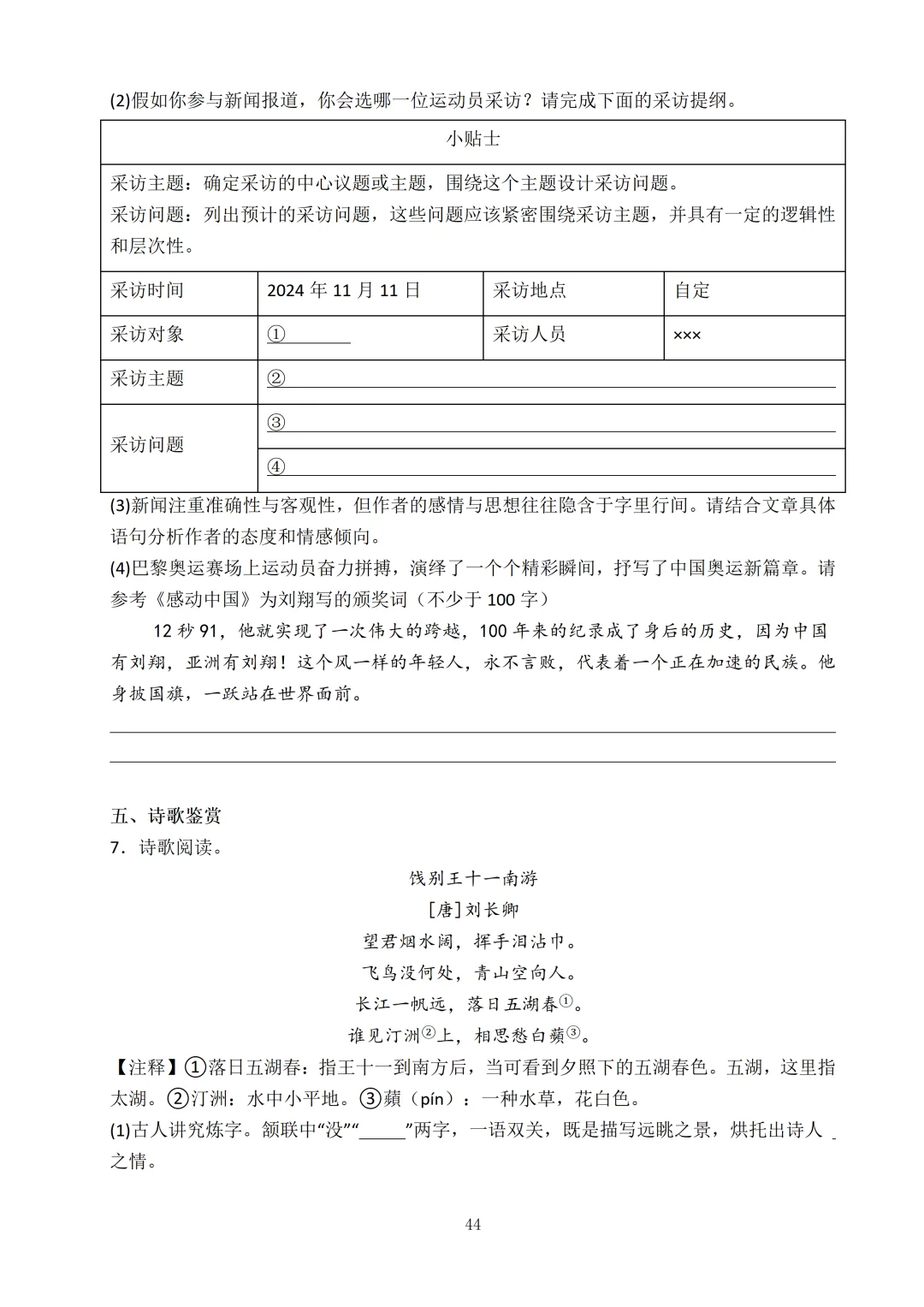 每个板块难度升级!综合性学习板块考法更灵活,要求学会拟写新闻采访提纲等技巧。阅读板块材料更丰富,理解难度会加大,要求理解文章的深层主旨内容。作文写作难度加大,要有审题意识,明确你想要表达的主旨。需要孩子们通过想象,与不同的时间维度(过去、未来)和媒介(书本、历史人物等)进行沟通,展现自己的思考。